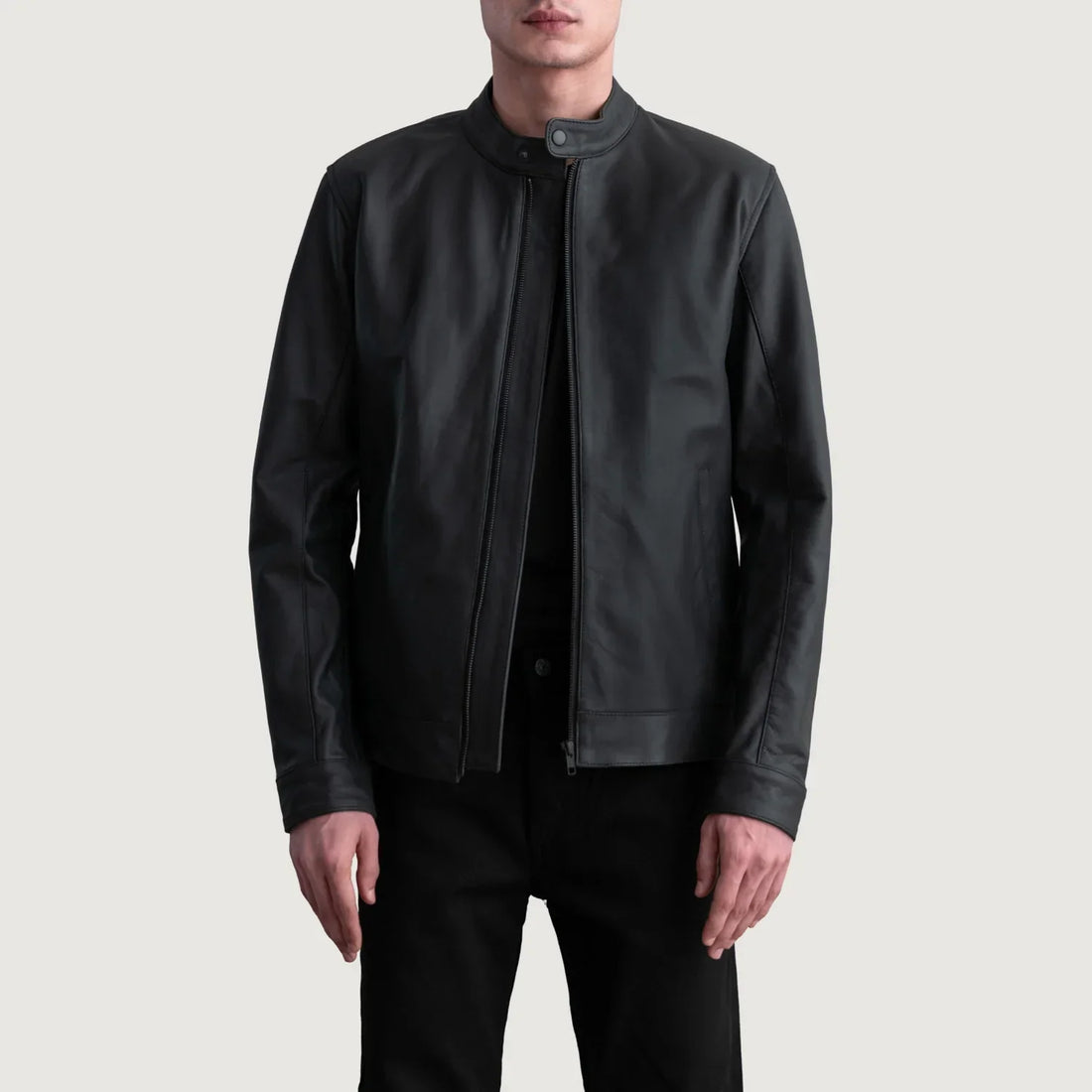 Francis B-3 Black & Cream Leather Bomber Jacket