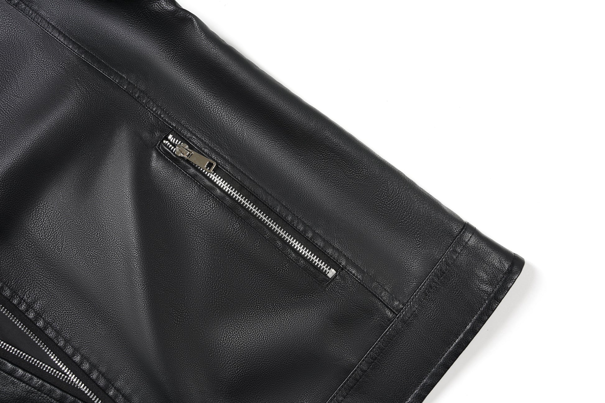 This timeless piece is meticulously crafted from premium faux leather, offering both durability and a sleek appearance. It features traditional biker details such as asymmetrical zip fastenings, snap lapels, and zippered cuffs, embodying an adventurous and rugged charm. Practicality is not overlooked, with multiple zippered pockets providing ample storage for essentials. The tailored fit accentuates the silhouette, making it a flattering choice for any body type. Whether you're hitting the road on your motorcycle or just looking for a stylish layering option, the Axel jacket provides the perfect combination of edge and sophistication, ensuring you make a statement wherever you go.