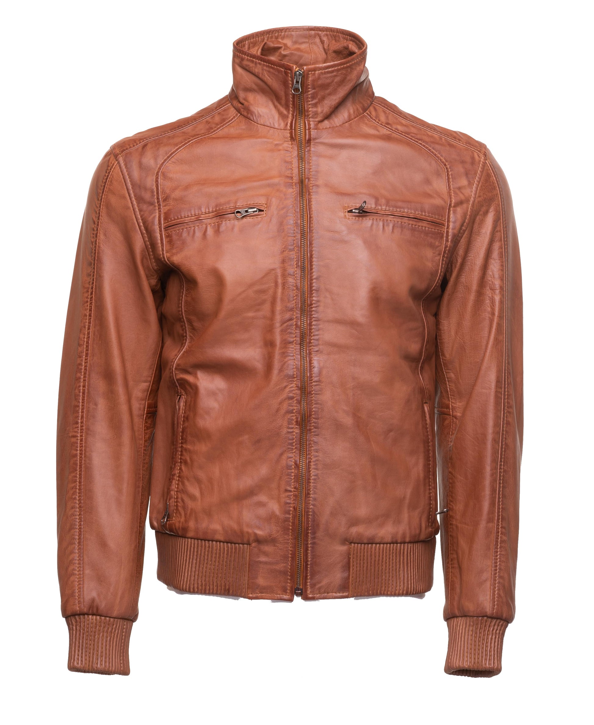 Beltrans sand washed leather jacket with stretch leather hems & cuffs