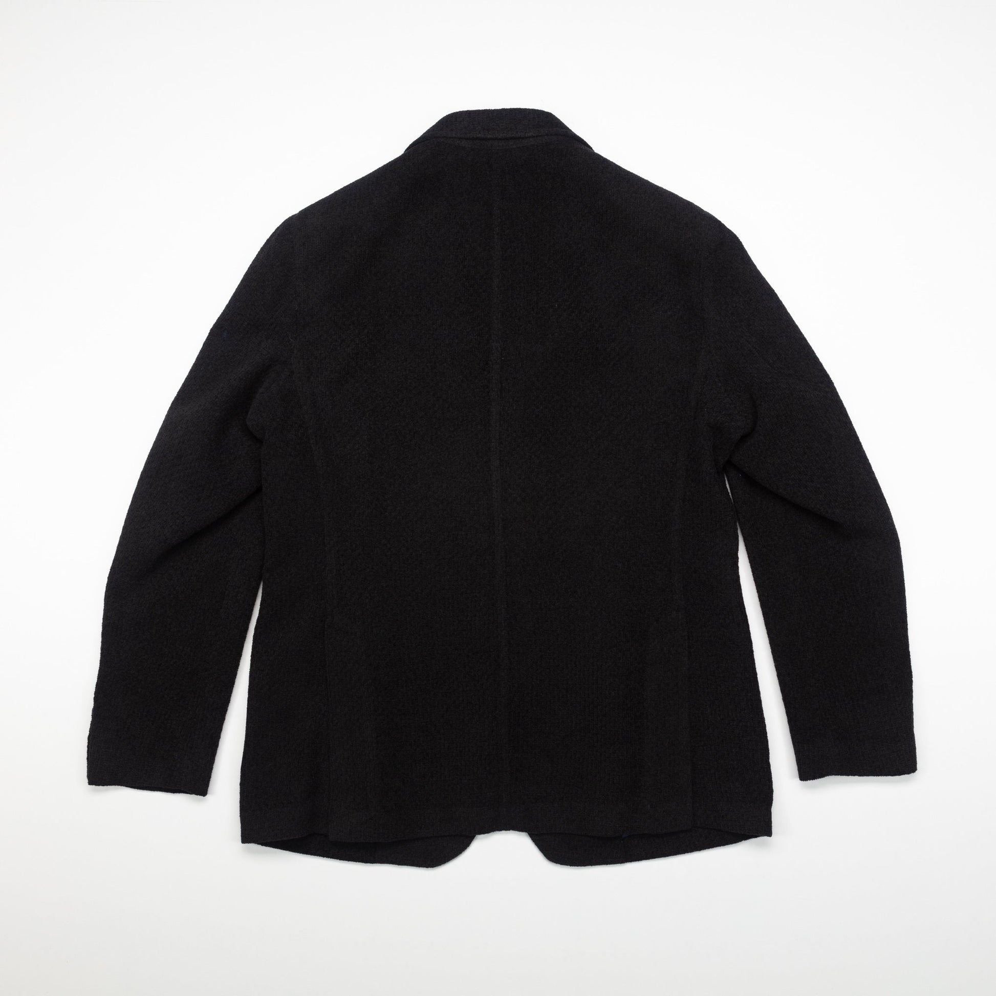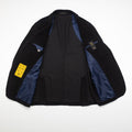 Single breasted blazer in a very special cotton blend fabric. The effect is quite unique and gives the jacket a very special appearance. The fabric is very particular because it is knitted like a shirt and then coupled with an elastic jersey.