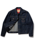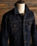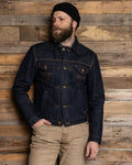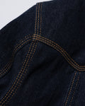 This 17 oz selvedge denim is raw and unwashed, with deep indigo saturation and a smoother hand feel thanks to its left-hand twill weave. Woven slowly on mid-century shuttle looms, each yard of fabric carries unique character and subtle irregularities that modern high-speed looms can’t replicate. Sanforization minimizes shrinkage while preserving the integrity of the break-in process. The red-line selvedge ID is a nod to denim’s heritage—and a marker of the slower, deliberate craft behind each jacket.