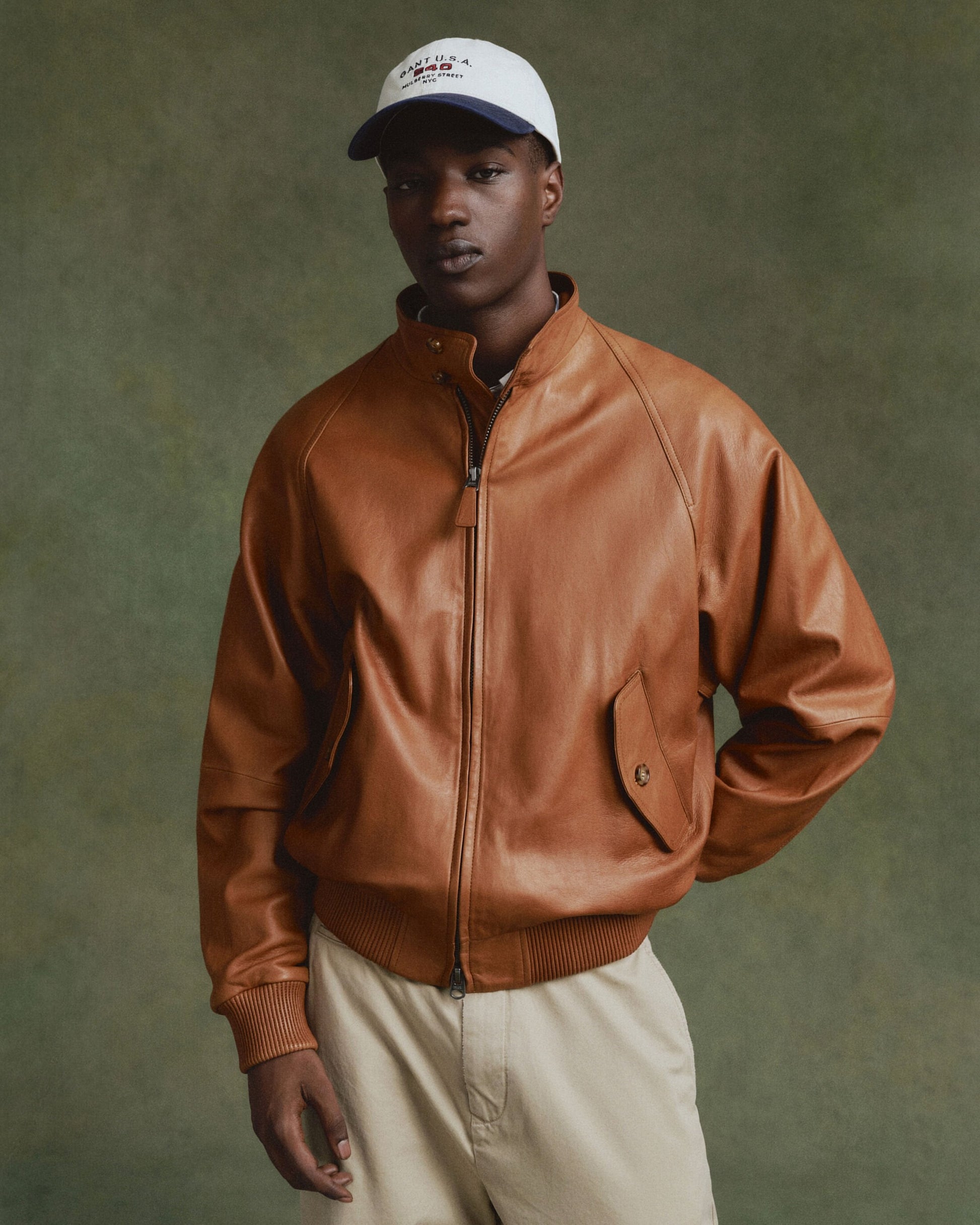 Brown Leather Bomber Jacket