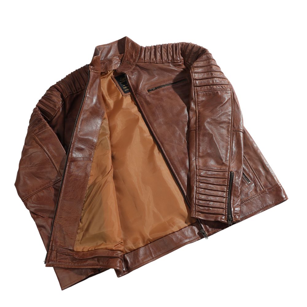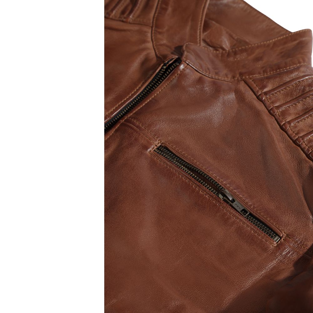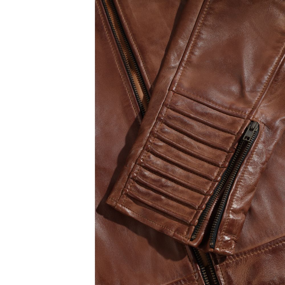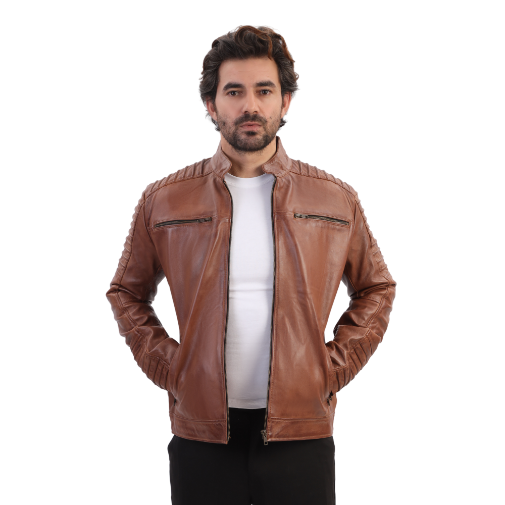 The need to have hands on a jacket is always something important, and with this kind of beauty, how could anyone resist having hands here? This Cafe racer distressed jacket with piping is made of full-grain leather and looks incredible. The front closure is a zip with a stylish round collar, and there are pockets at the front, which add to the jacket's beauty. This jacket is ideal for a variety of casual occasions.