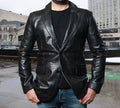 Need something toasty and chic to wear? In addition to being incredibly fashionable, our black leather blazer is incredibly soft and cozy. This jacket is designed from full-grain leather and features a buttoned front, cuffs, and narrow-notch lapels for added flair. You've got enough insulation from two practical pockets on the outside.