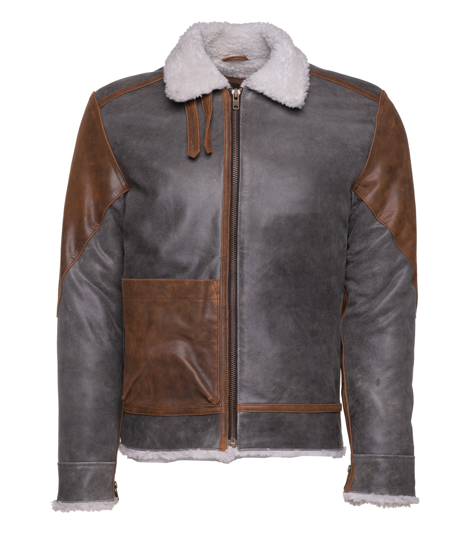This winter, you don't have to struggle to find a comfortable jacket. Your search ends here when you choose our Scott's Patched Leather Jacket with Sherpa Lining. This cool jacket is crafted of Faux fur lining known as Sherpa and has a shirt-like collar. The zipper closure and open hem cuffs make it easy to wear. It has 1 pocket inside and 1 functional pocket outside so that you can carry your essentials easily.