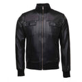 Are you looking to impress with your look? Then you are at the right place. The black leather jacket with a straight ribbed collar is here. It is the lone piece that will make your fall outfit mix much easier and sleeker. It has a Satin Polyester inner lining, Zipper Closure, Straight ribbed collar, Rib-knitted hem cuff, 1 pocket inside, and 2 front button pockets.