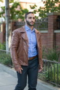 Want to give a big boost to your personality when riding your bike? Then add Distressed sandwash biker leather jacket to your outwear for more killer looks. It has a very soft and smooth texture, allowing you to be comfortable in the great outdoors The ravishing leather jacket has a zipper closure with notch collar and open hem zipped cuffs. Shoulder and arm patches makes it truly unique.