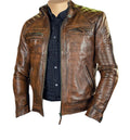 Do you love the appearance of cafe racers dressed up in leather jackets? Here is your chance to look and feel like a cafe racer by simply wearing a distressed brown moto leather jacket. We offer the widest selection of distressed leather jackets for men in different colors and styles. Crafted with excellent stitching, these cafe racer jackets for men are out of this world.