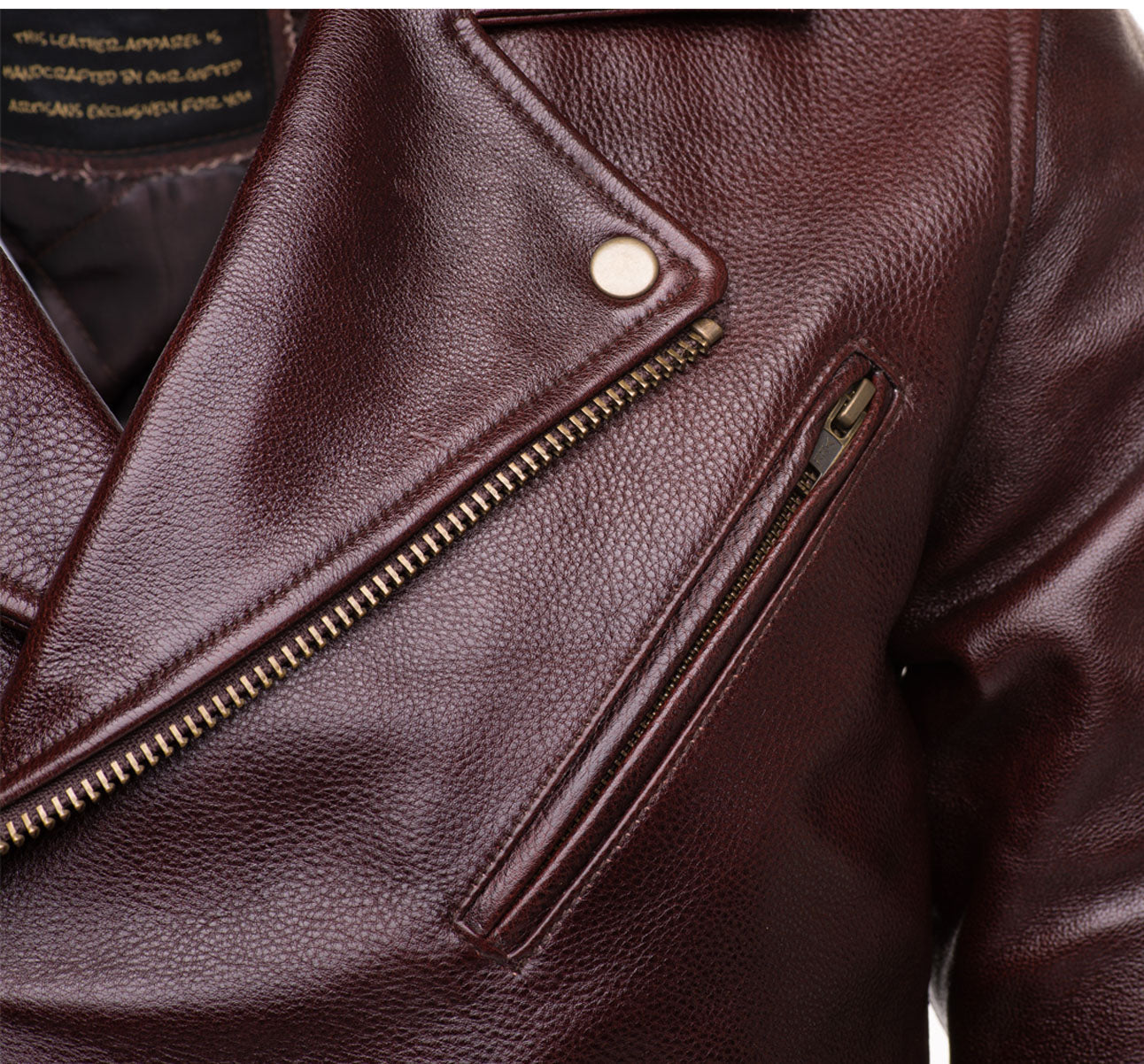 Enjoy this winter by styling our Elliot oxblood biker leather jacket with waist belt that can provide you with the charm of styling. This brown jacket features a Side Zipper Closure, lapel style collar, zipped cuffs with a waist belt, 1 pocket inside and 1 diagonal zipper pocket & 1 flap pocket that will keep your essentials safe.