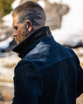 The interior is finished with 100% cotton twill seam binding for a clean, unlined construction. The collar and cuffs are backed with full-grain buffalo leather for added structure and strength.