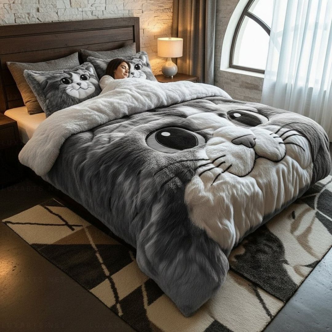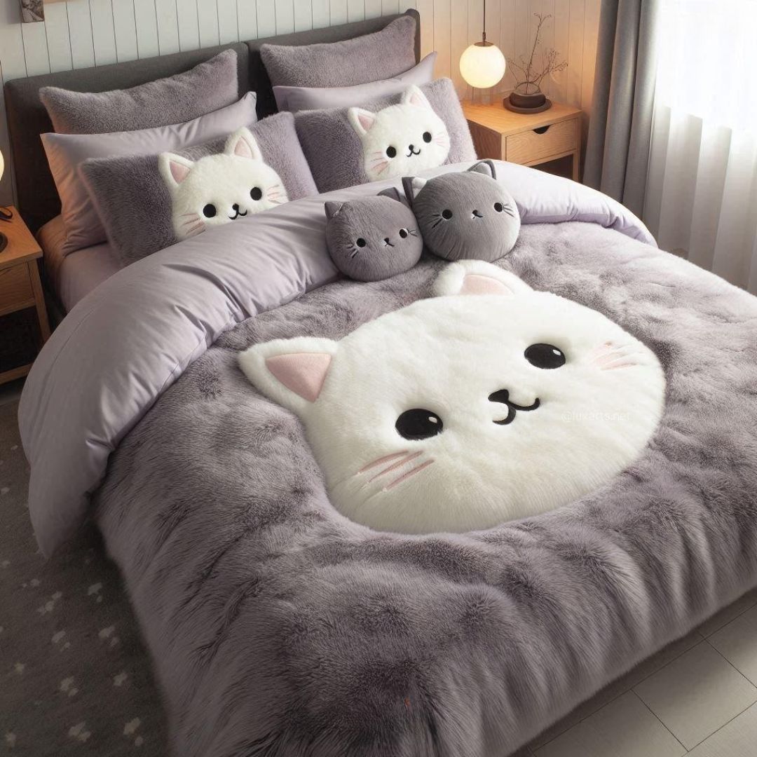 Fluffy Cat Bedding Set – Cozy & Creative Bedding for Cat Lovers