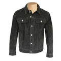 Capture a classic Hart's black suede trucker leather shirt to showcase a mesmerizing personality. This is an extremely fashionable item that will make you look stunning and lovely. It has been manufactured with top-grain leather in black color. The interesting design elements include front buttoned closure, shirt-style collar and open hem buttoned cuffs. This astound leather jacket has one pocket inside and two functional buttoned pockets to keep your belongings secure.