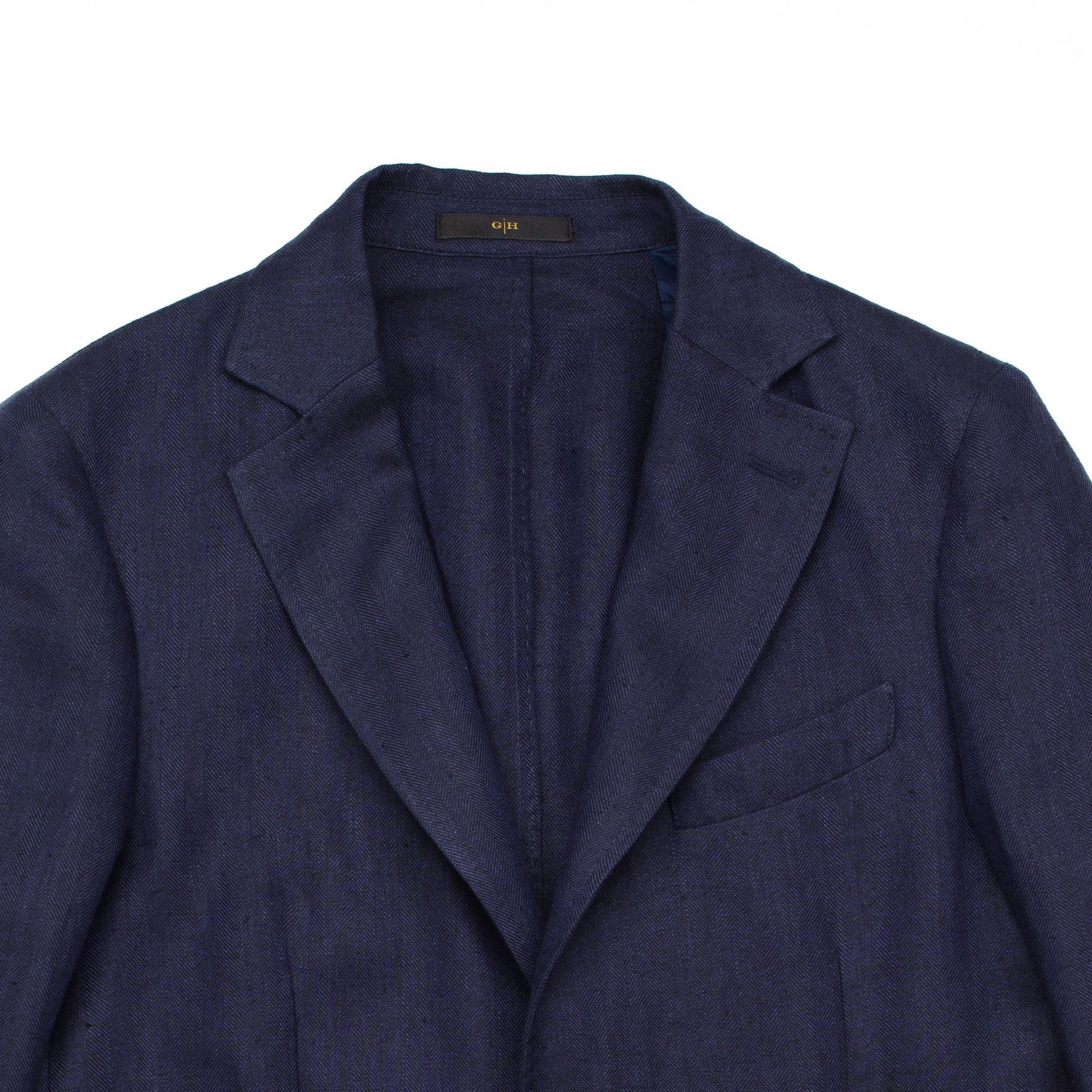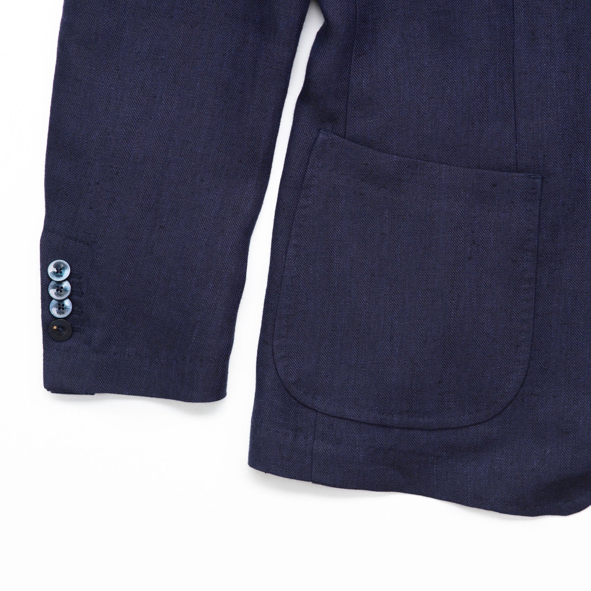 Created from a combination of Hemp and Linen, the herringbone pattern of this jacket is crafted from a remarkable fabric. Featuring a 'Drop 7' fit, it is both tailored and flattering to a variety of body types.