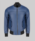 Your One-Way Passport to Cool Jim Men’s Snug Fit Blue Bomber Leather Jacket