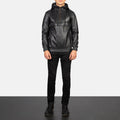 Kenton Hooded Black Leather Pullover Jacket