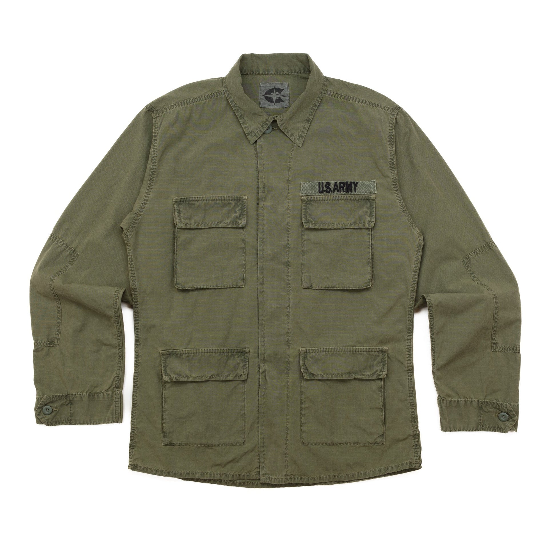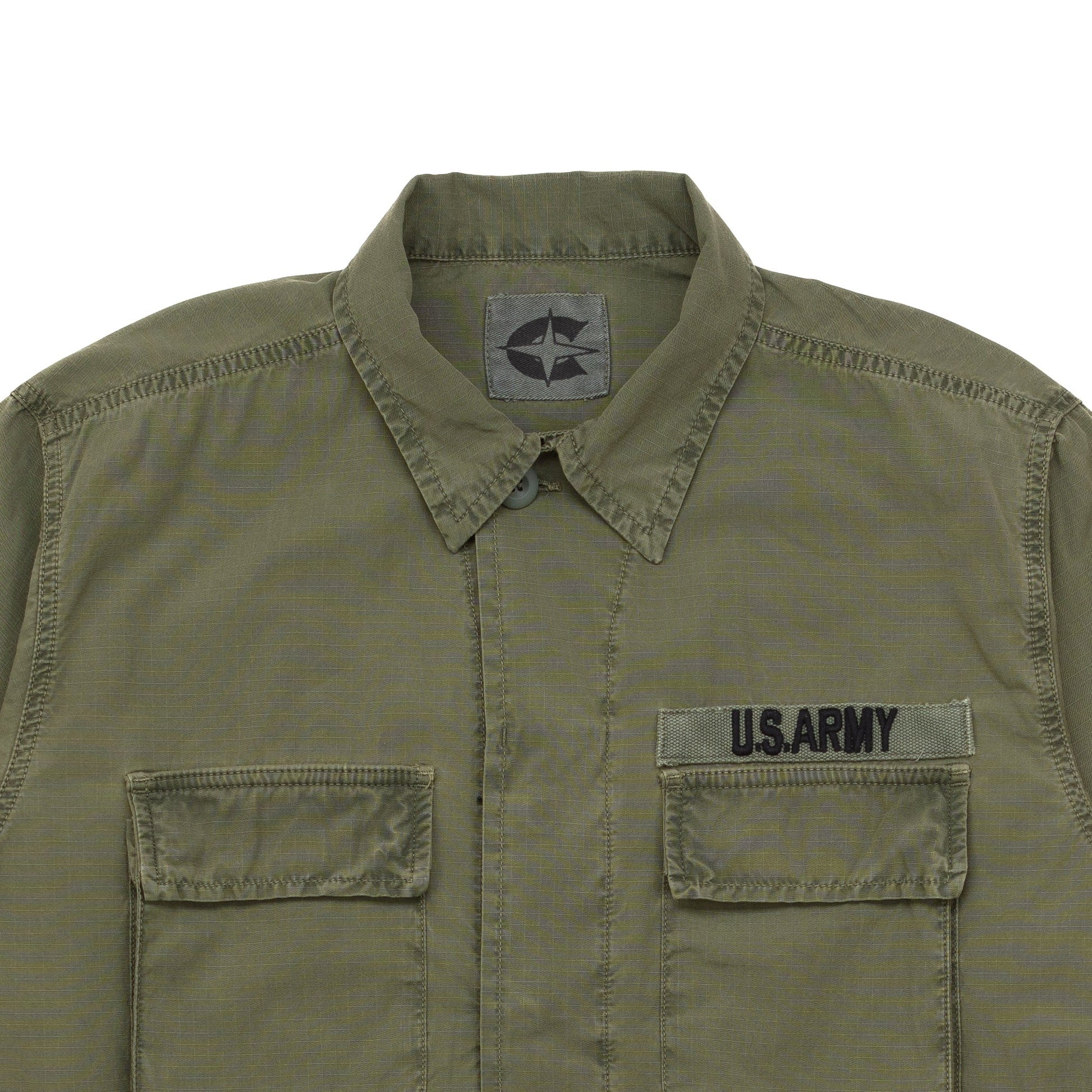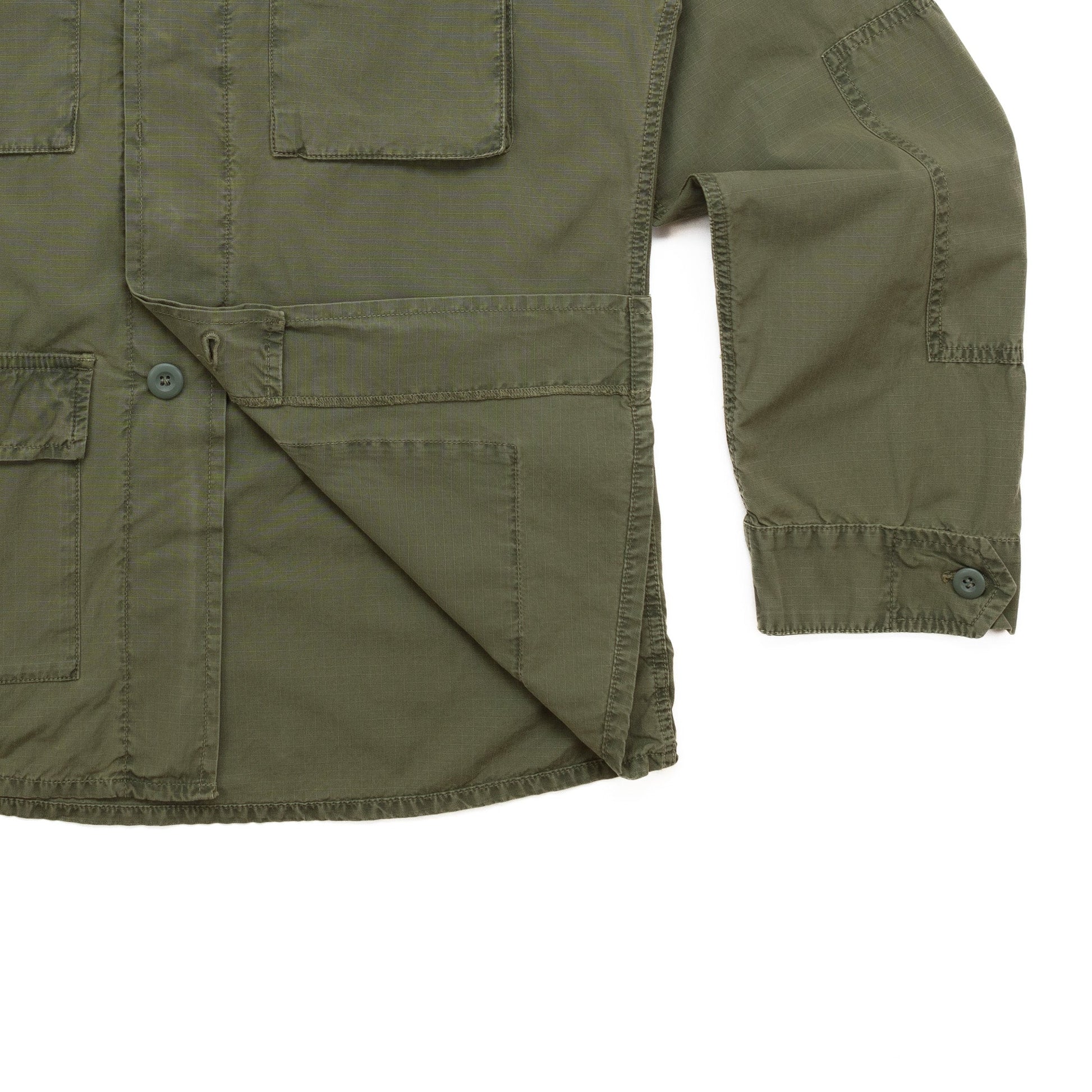 Military inspired all the way, but with a revised fit that's not your usual over-sized cut. The fabric is a cotton ripstop which adds a subtle contemporary detail to an otherwise vintage military style.