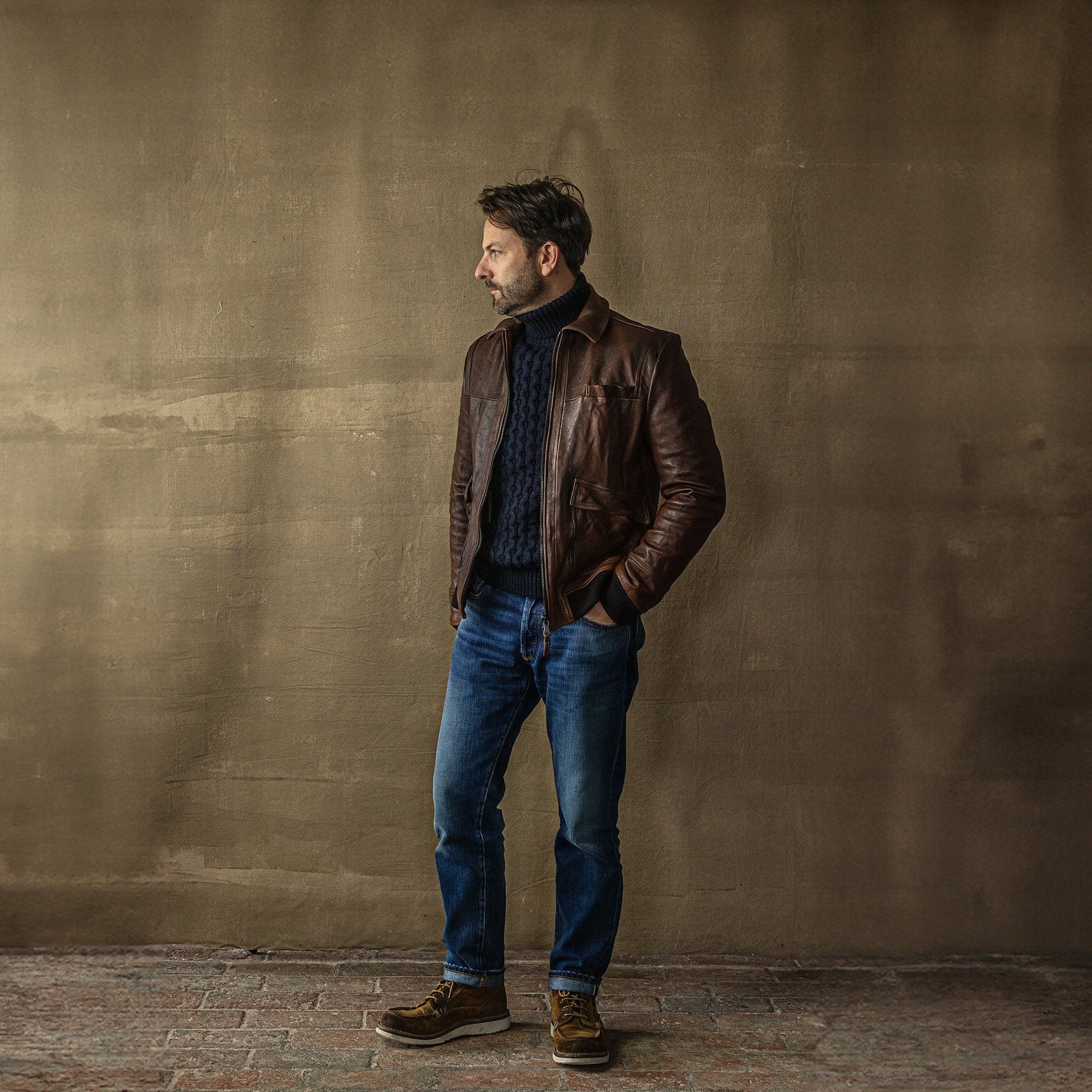 We absolutely love the colour of this jacket - the leather has been tanned and aged to give it the most incredible look. A relatively tailored cut, the jacket has sone light quilted padding in parts of the lining.