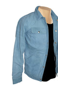 Style this jacket-like shirt that can make you a show-stopper. This chic Sky blue suede shirt has a vibrant vibe to it. Its features include Buttoned Closure, Spread collars, open Hem buttoned cuffs, 1 pocket inside, and 2 front buttoned pockets so that you can carry your essentials.