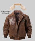 Take flight with this that’s built to make history. Every inch of high-quality leather has been carefully selected and treated to achieve that perfect vintage-inspired texture. The comes alive with its warm, distressed finish that only gets better with time. Your adventure begins with a detachable faux fur collar that adds both versatility and a dash of vintage military charm.