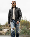 Crafted from 1.5mm semi-vegetable tanned cowhide leather, the Bonneville jacket is built to last. The sage green 100% cotton twill liner provides comfort and durability.