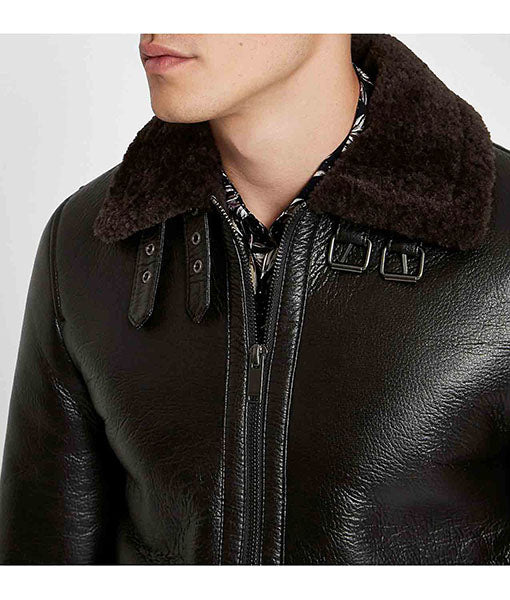 Thiselegantly represents black beauty, a treat for black lovers. Its charming yet refined style is complemented by the textured finish, adding character. Inside, the faux shearling lining keeps you cozy while enhancing its vintage aviator appeal.