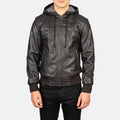 Nintenzo Brown Hooded Leather Bomber Jacket