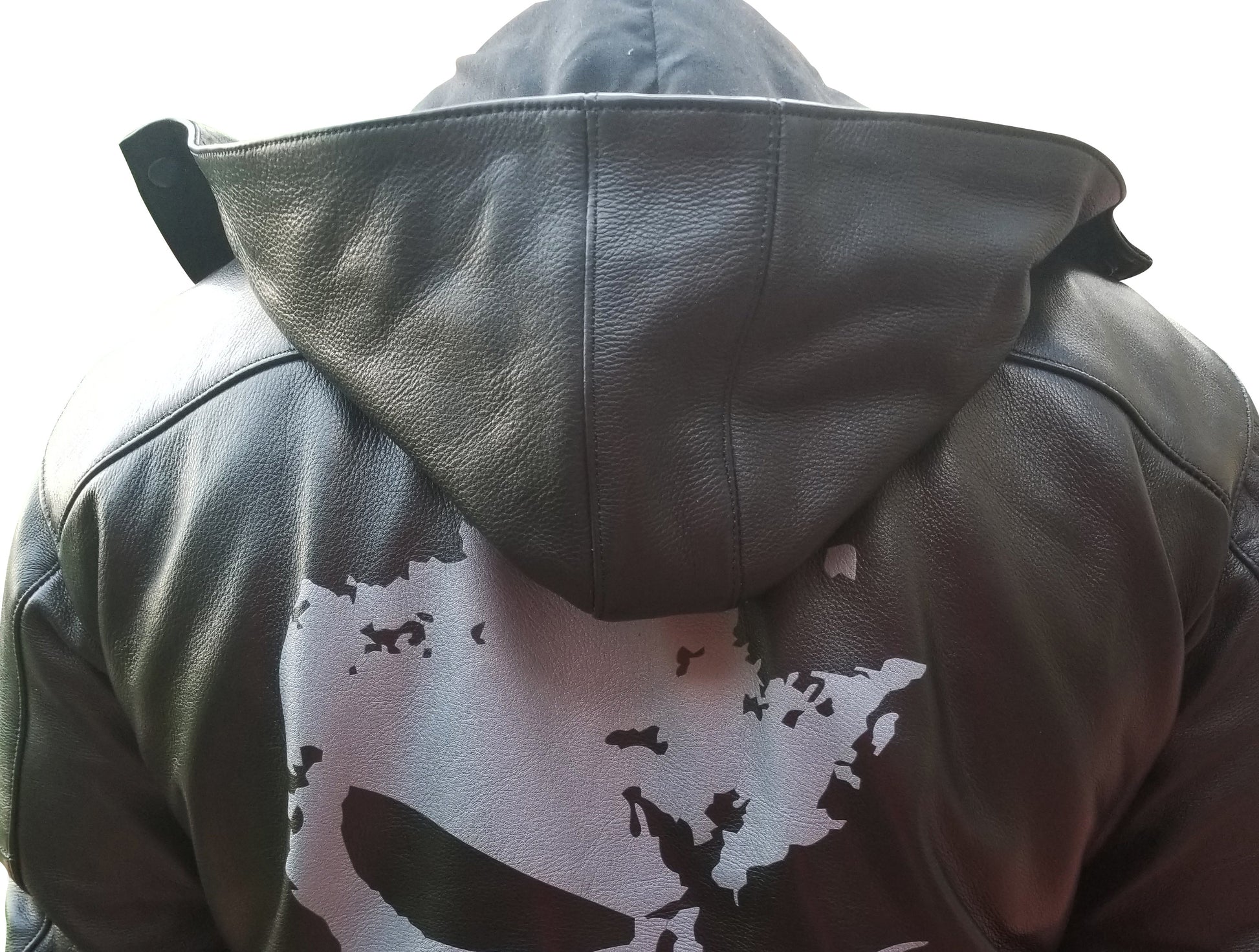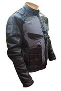 Want to wear something that makes you feel more powerful and elegant? If so, this leather jacket could be a good choice. Punisher's motorcycle leather jacket takes an inspiration from Punisher, a fictional character in Marvel Comics. This striking black leather jacket, emblazoned with the Punisher skull logo, is a striking example of a jacket with a distinct style and unique fashion appeal. Round collar with front zipper add a touch of class. Wearing this leather masterpiece will have others in awe of you.
