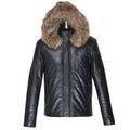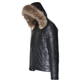Incredible puffer winter leather jacket fur hoodie is stunning outerwear that adds softness and comfort with its shiny exterior, and warm interior insulation. The vivid combination of black and golden appeals to the senses. Made of full-grain leather, lined with 100% Polyester having 150 gms polyfill insulation layer. Featuring a zipper and loop button closure with a round collar having a removable hoodie.