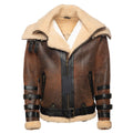 This Richard's vintage Distressed brown Aviator Bomber shearling Jacket will be your go-to piece of outwear this season. Made from double-faced sheepskin shearling for a cushiony exterior and a thick pile sheepskin shearling interior. Our reliable Richard vintage has a fur-lined collar. This stylish, limited-edition color jacket has an adjustable belt with a buckle at the waist and fur-lined, open cuffs to keep you warm.