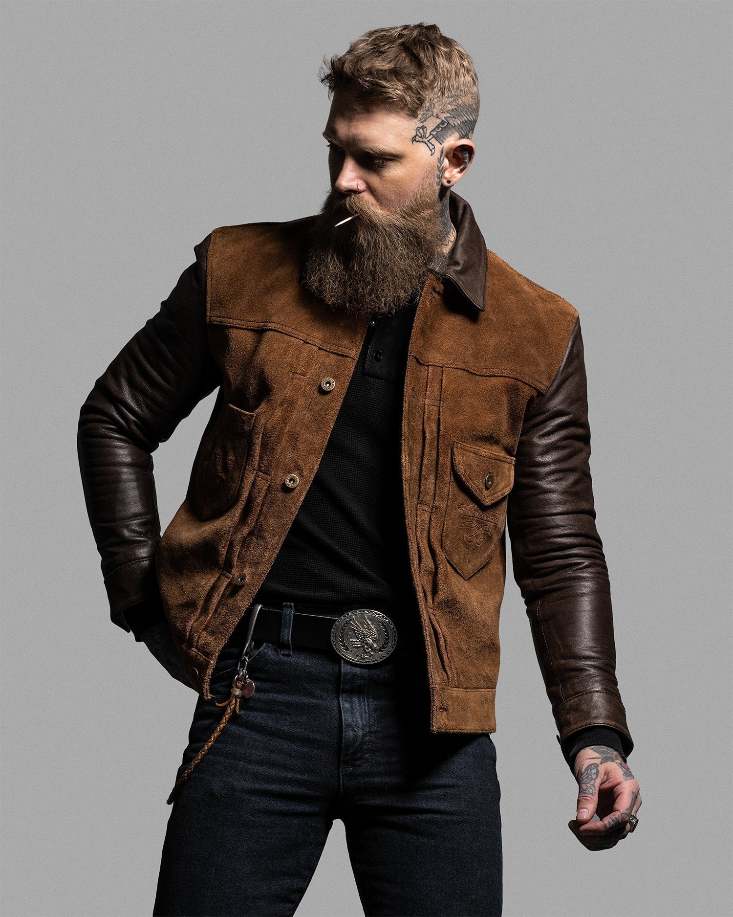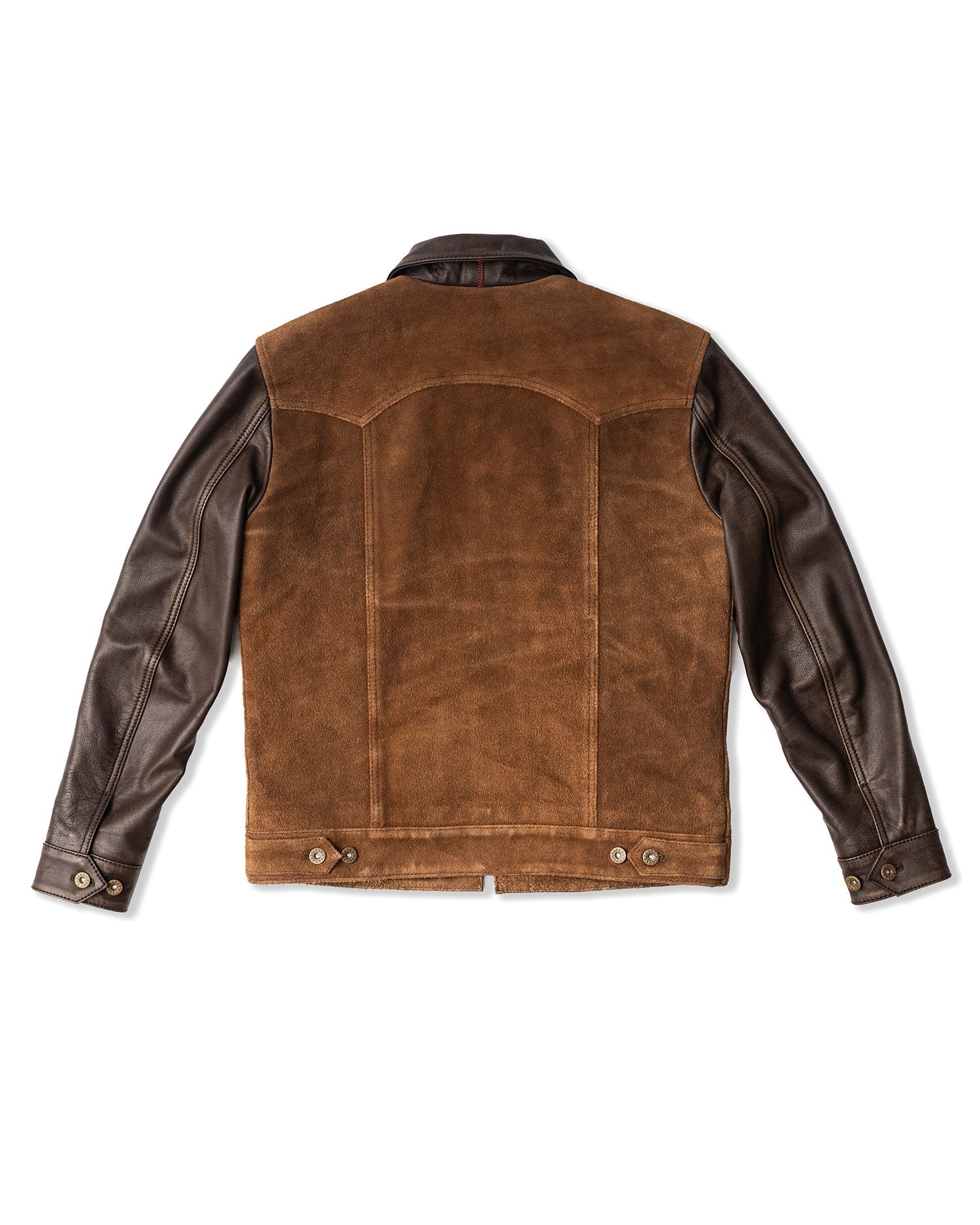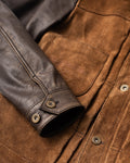 Crafted from oil-waxed roughout cowhide for the body and smooth waxed cowhide for the sleeves and collar, the Scoundrel blends two complementary textures into one cohesive statement. The roughout hides are treated with a proprietary hand-waxed finish, designed to draw out depth in the nap while adding water resistance and durability—without compromising breathability. As the jacket wears in, the contrast between the body and sleeves will deepen, with each panel aging at its own pace for a dynamic, lived-in look.