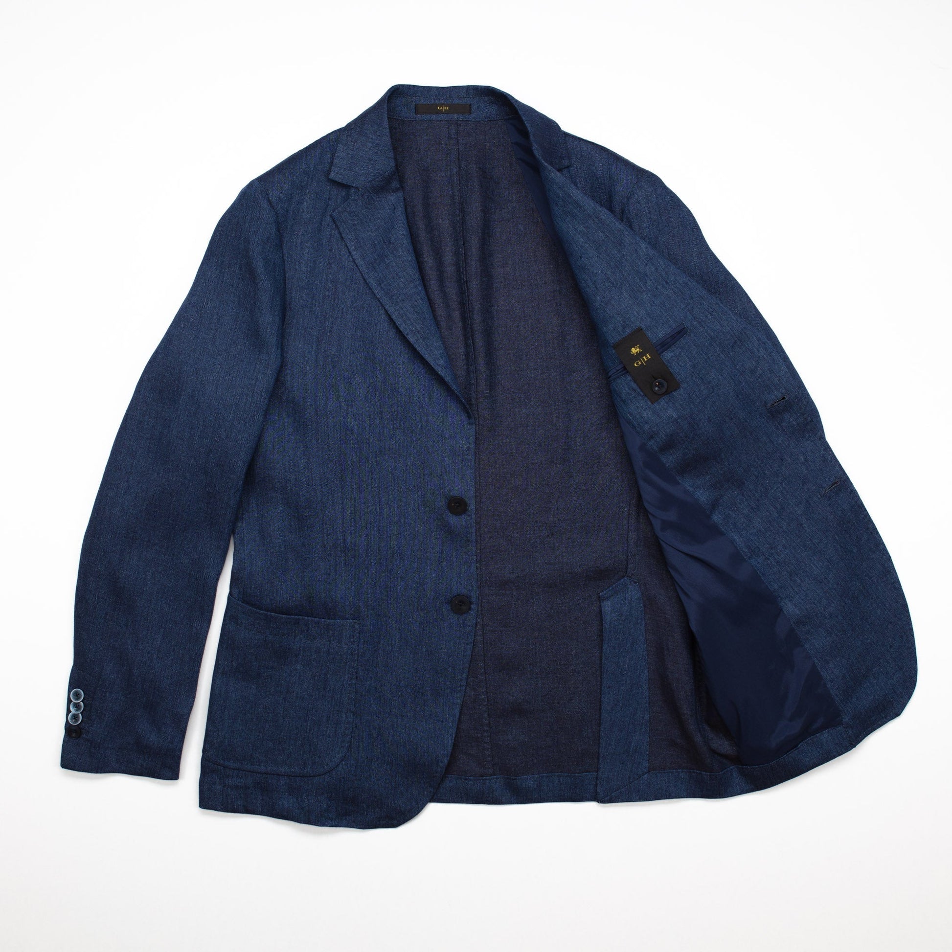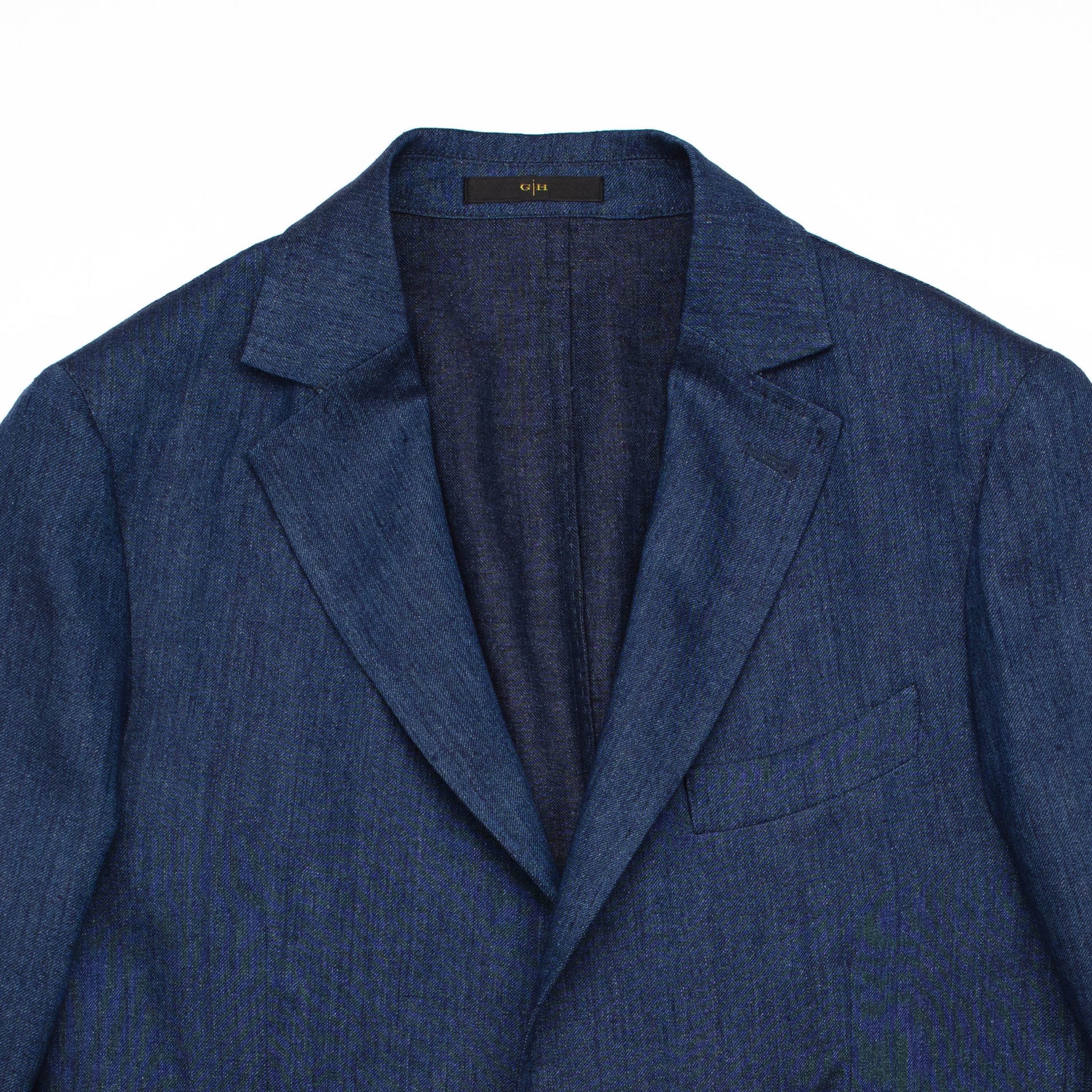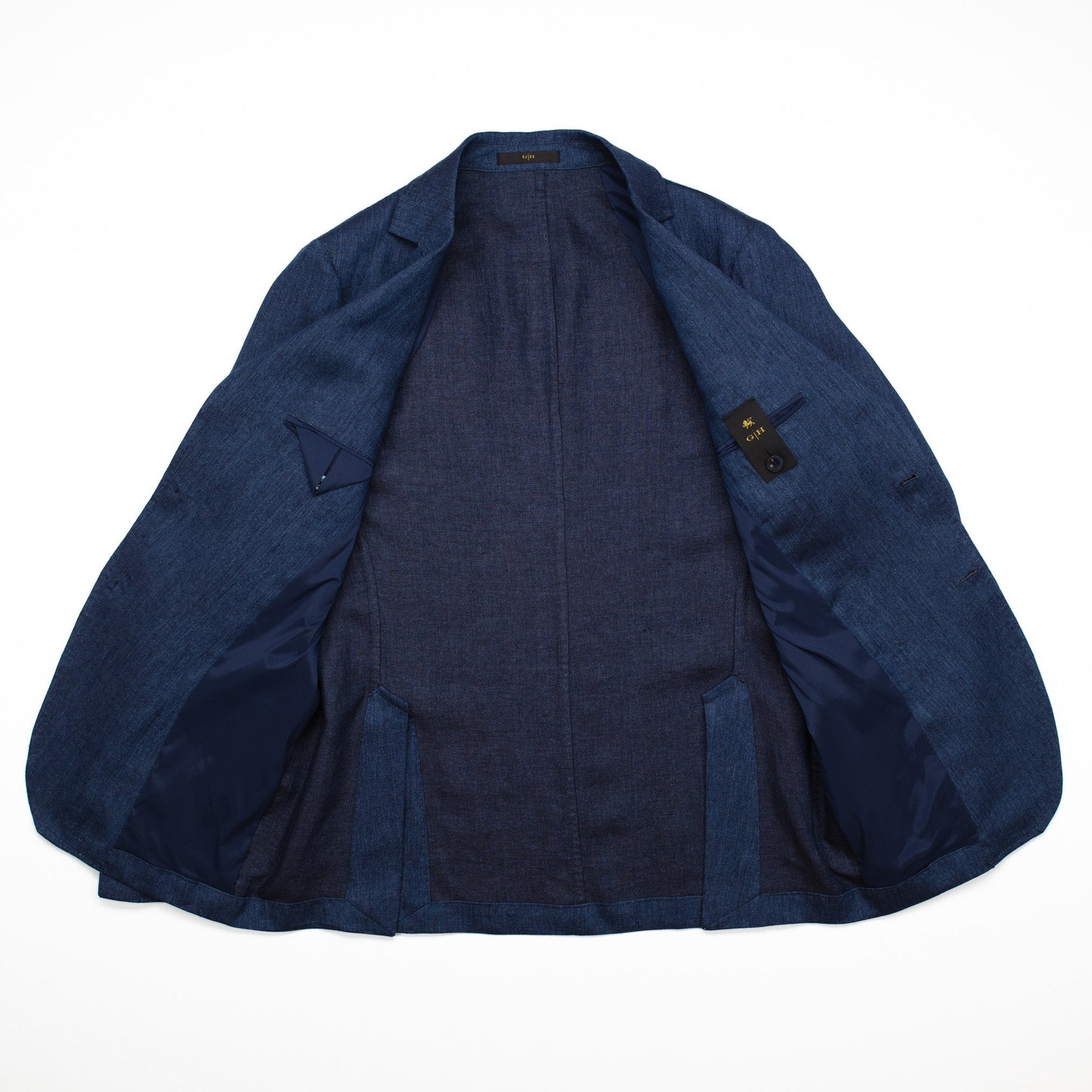 This jacket features a 'Drop 7' cut, designed to flatter a variety of body types. Crafted from 100% Linen and produced in Northern Italy.