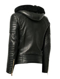 Add a touch of elegance to your outfit with this chic Sundown Biker jacket with fur hoodie. It has been made with full-grain leather material in a ravishing black color. The faux fur with hoodie, zipper closure, and open hem zipped cuffs adds too much grace to give a moto vibe to this slim-fit attire. The jacket is designed for an optimized men’s fit. It's incredibly fashionable and comfortable, making it the ideal accessory for urban biking and other adventurous outings.