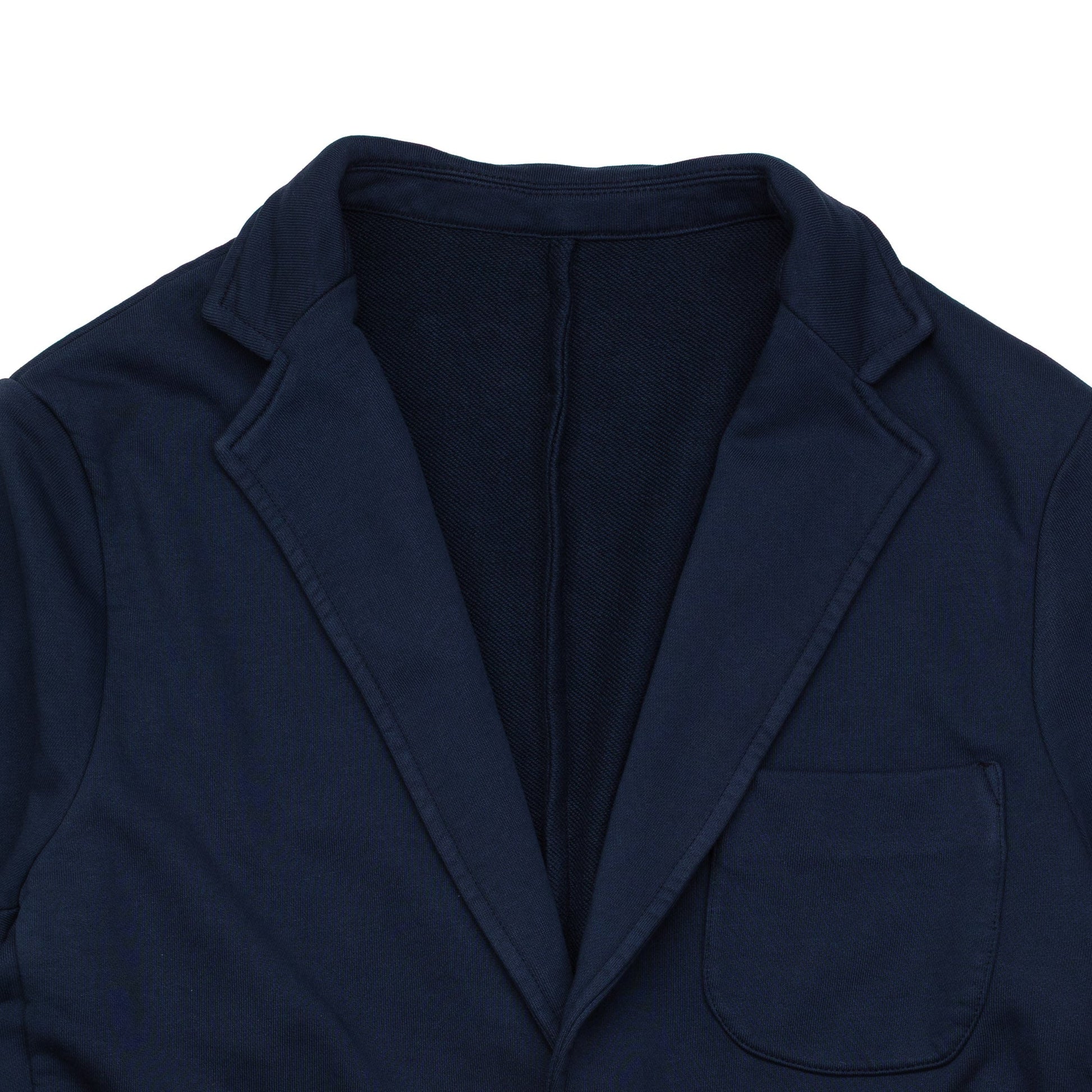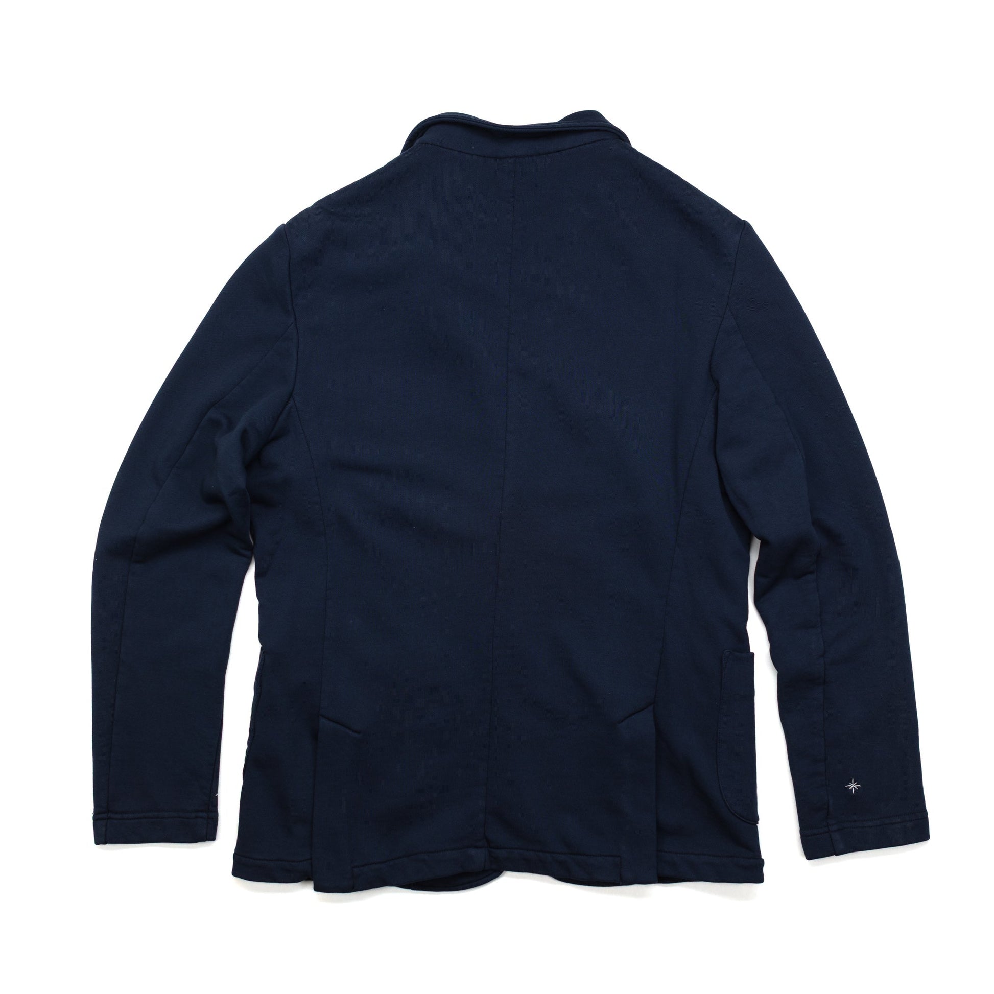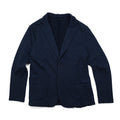 We were really happy to select this jacket for the summer season. The silhouette - as you can see - is a regular two buttoned single breasted jacket - but this is made from a jersey cotton - like you'd find in a sweatshirt or hoodie. This makes this jacket incredibly comfortable, effortlessly casual and the perfect summer jacket that looks its best when dressed down in a casual style.
