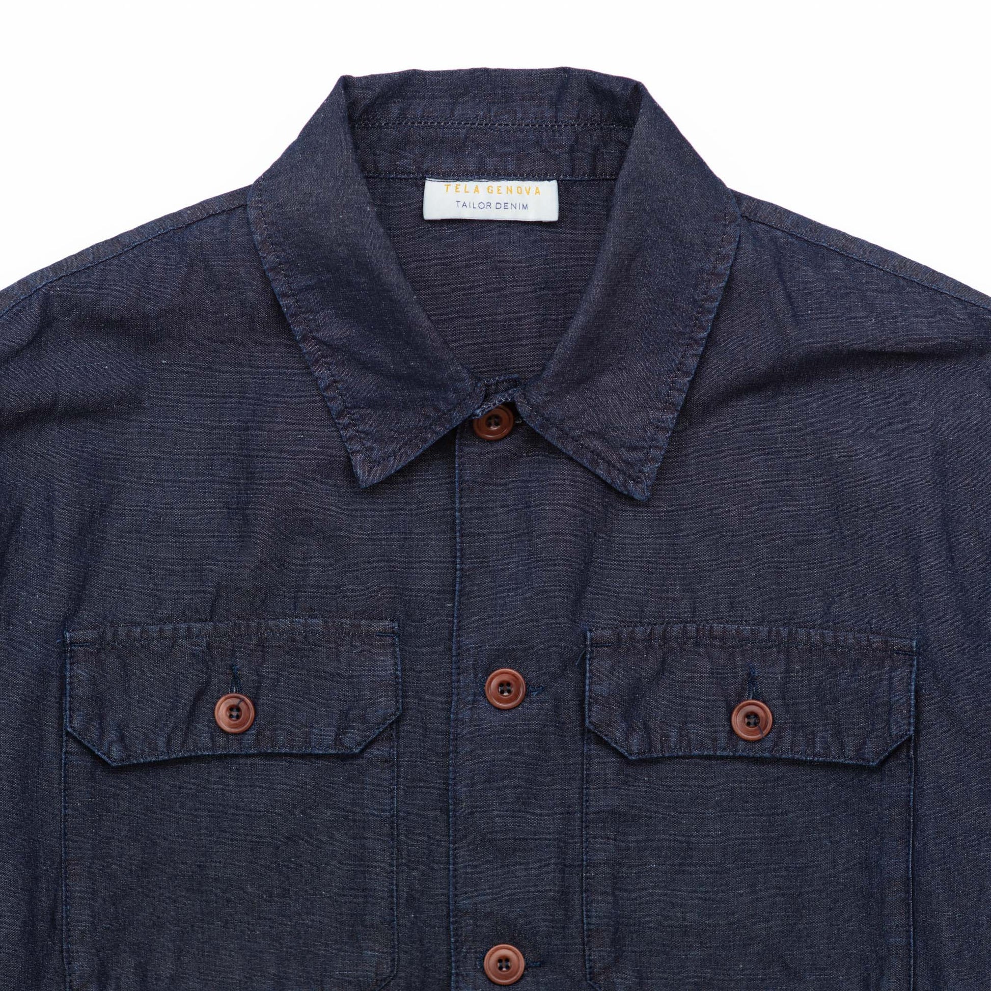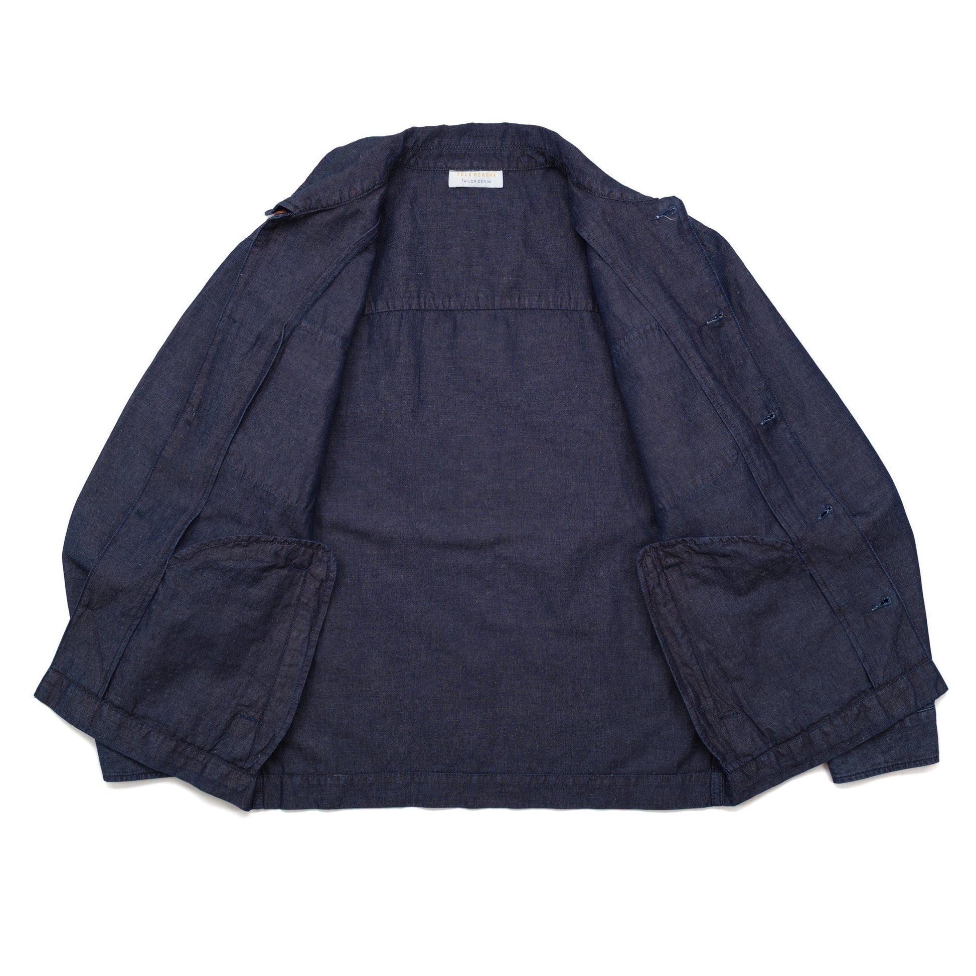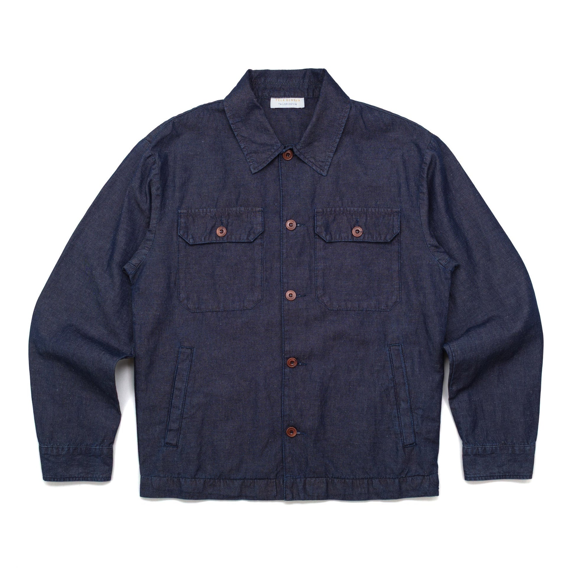 A utility inspired jacket in a lightweight cotton and linen blend in a great looking indigo colour.