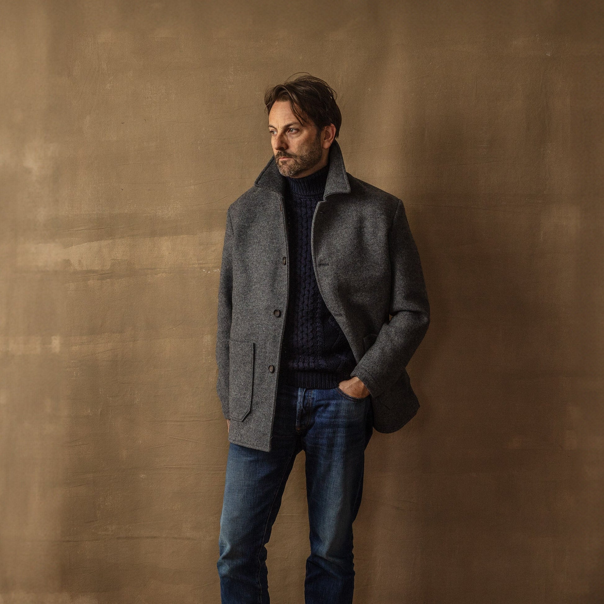 A magnificent looking winter jacket that has been treated with a hydro-repellent layer on the outer wool fabric.