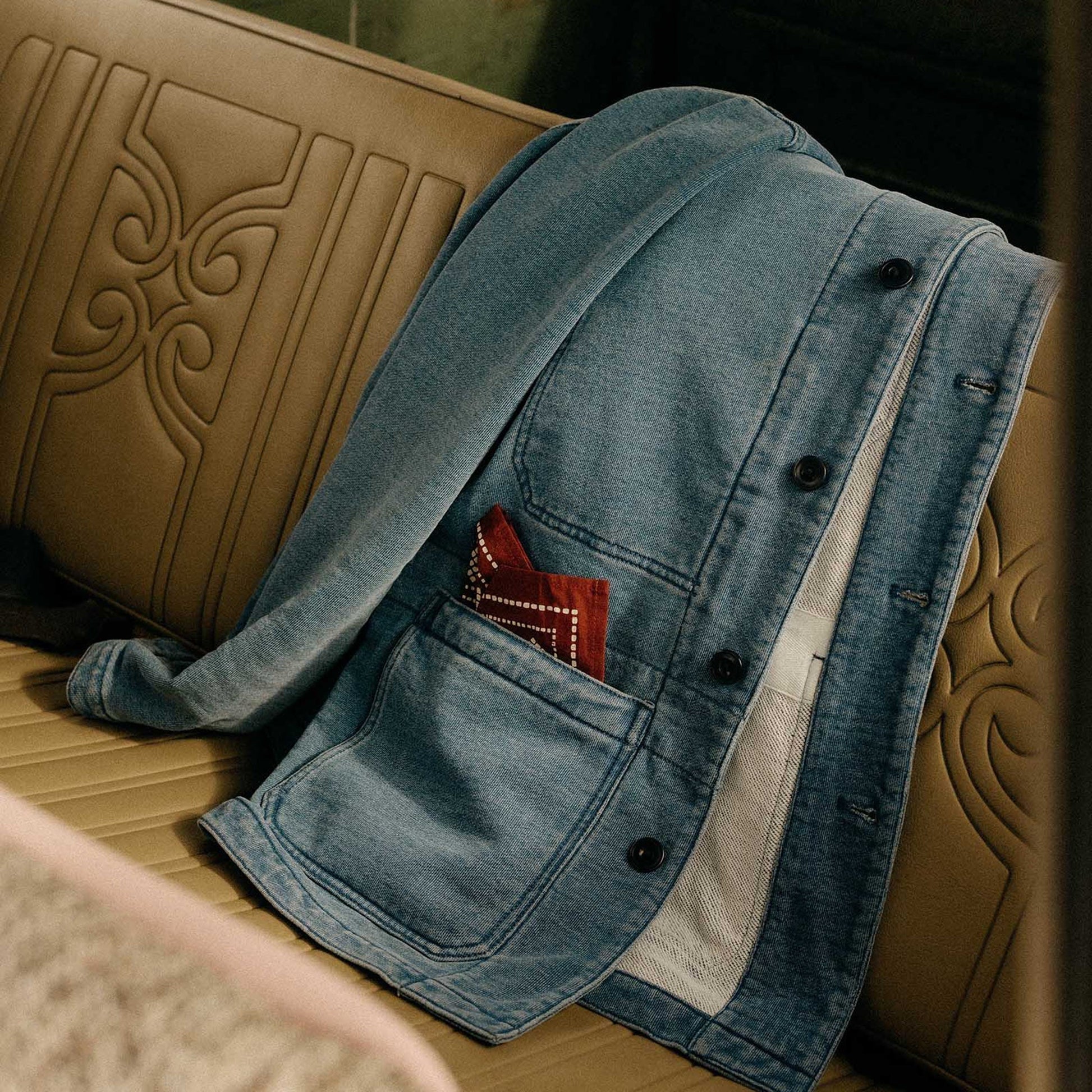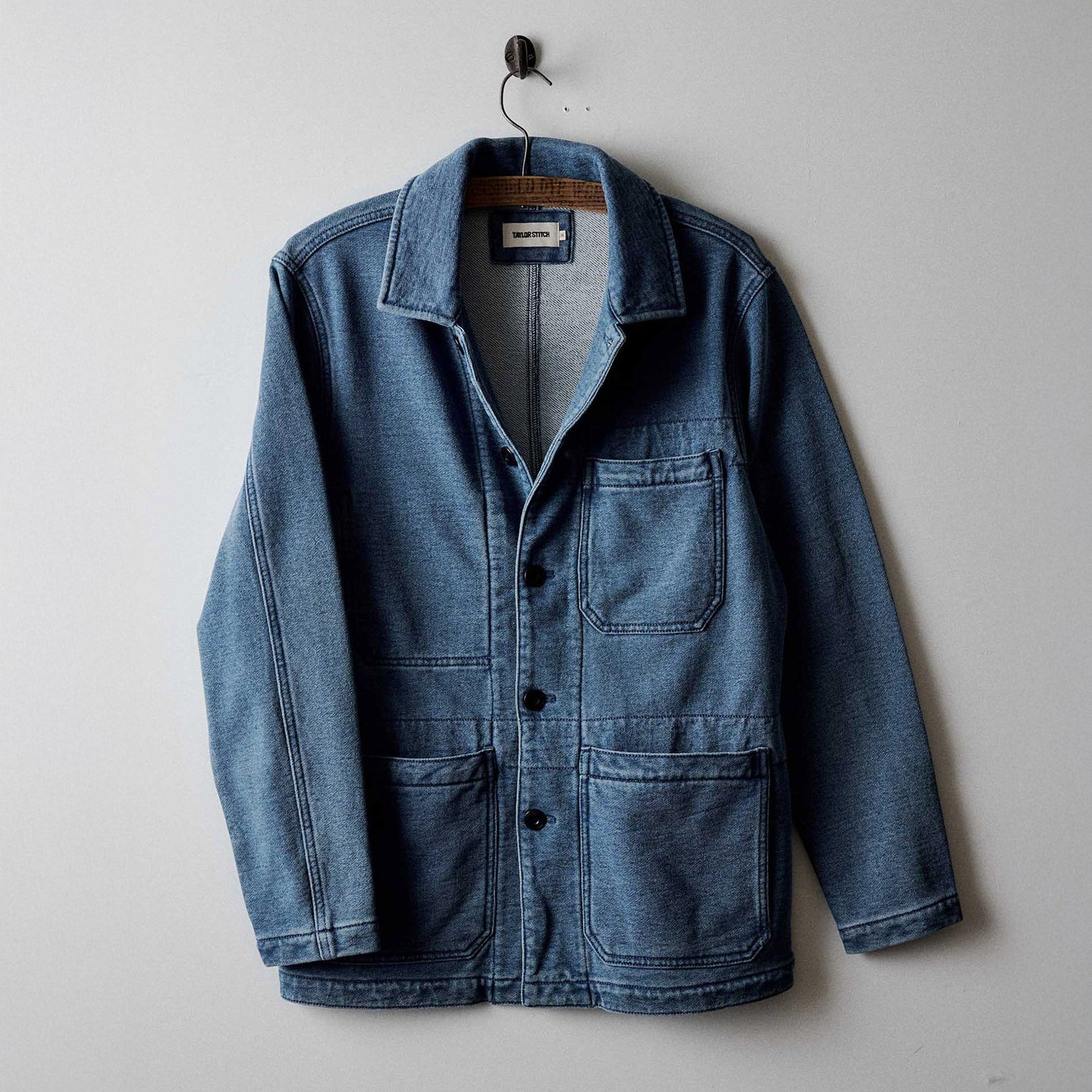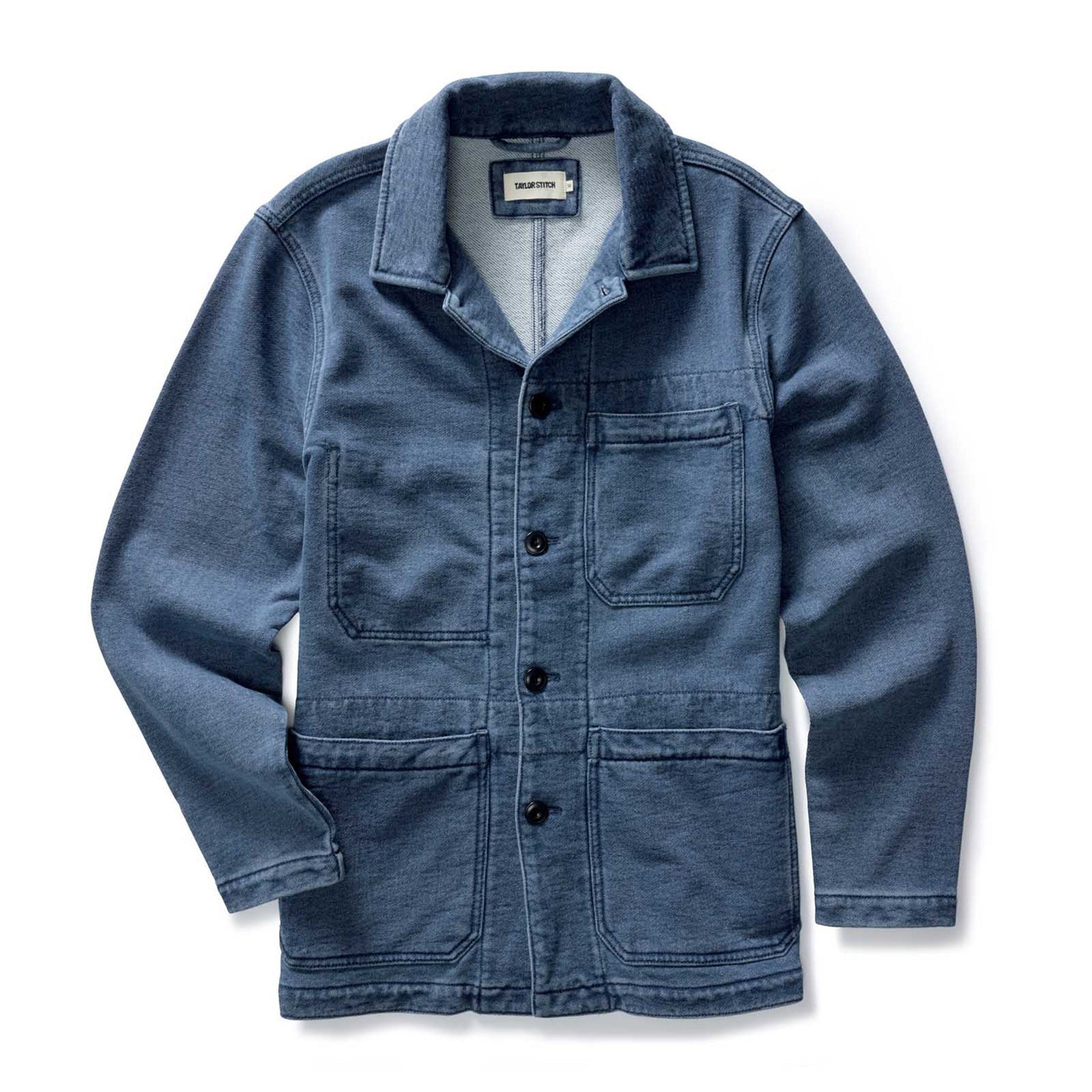 A laid-back riff on the classic chore coat silhouette, The Primer Jacket is built for spring days and cool summer nights. Its soft terry construction and unstructured finish offer an easy drape, while a bleach-washed indigo treatment adds vintage character that deepens with every wear