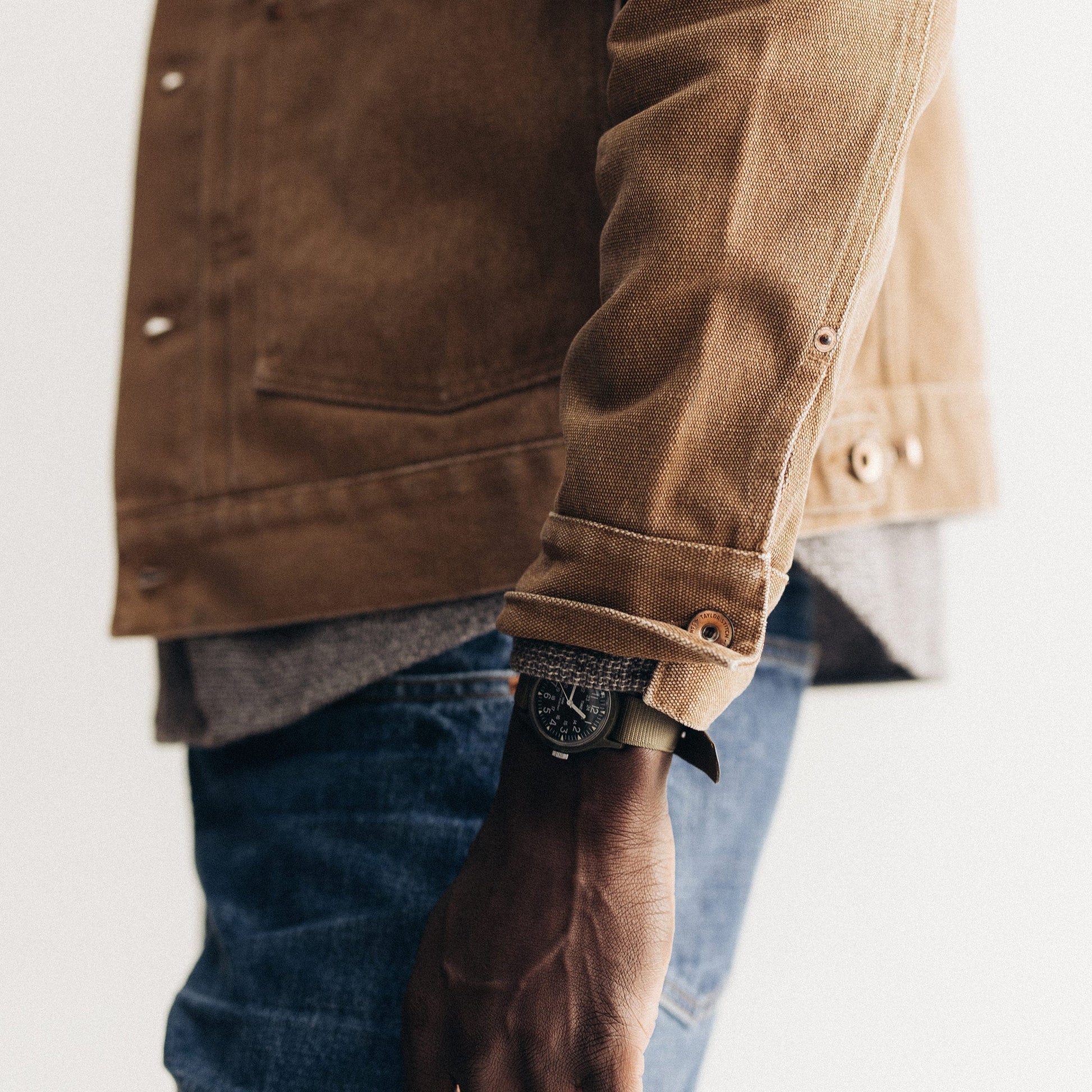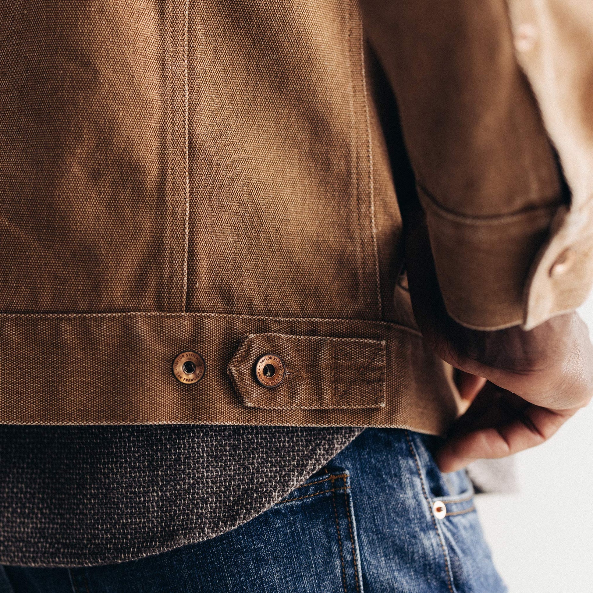 Our vintage-inspired trucker jacket, The Ryder, gets a new, work-ready finish. Rendered in our custom double-dyed Chipped Canvas and featuring a distinctive double-pleated front, this trucker is designed to develop unique character the harder you wear it.