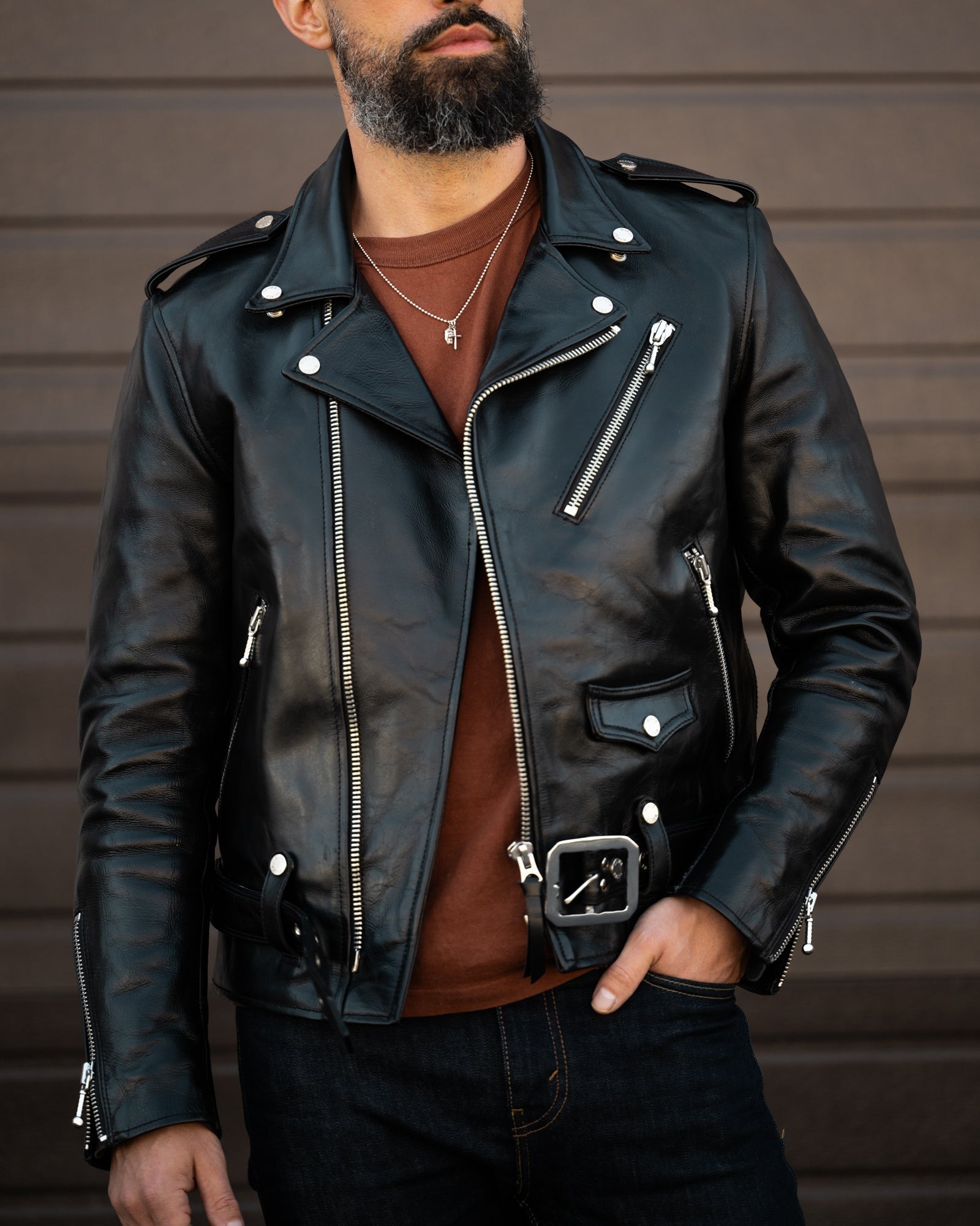 Each jacket is designed in Toronto and built in our own dedicated workshop in Pakistan. We oversee every step — from pattern drafting to leather selection to final inspection. Every jacket is individually photographed, measured, and quality-checked before leaving the shop. We produce in small batches using full-grain leathers, custom hardware, and offer complimentary custom sizing on all builds.