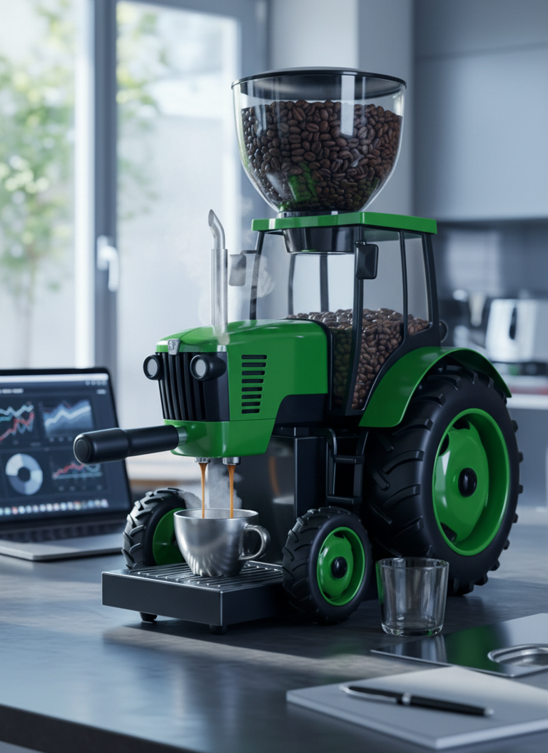 Each Tractor Coffee Maker is a fusion of engineering precision and design beauty. Every curve, screw, and steam vent is inspired by the elegance of mechanical craftsmanship.