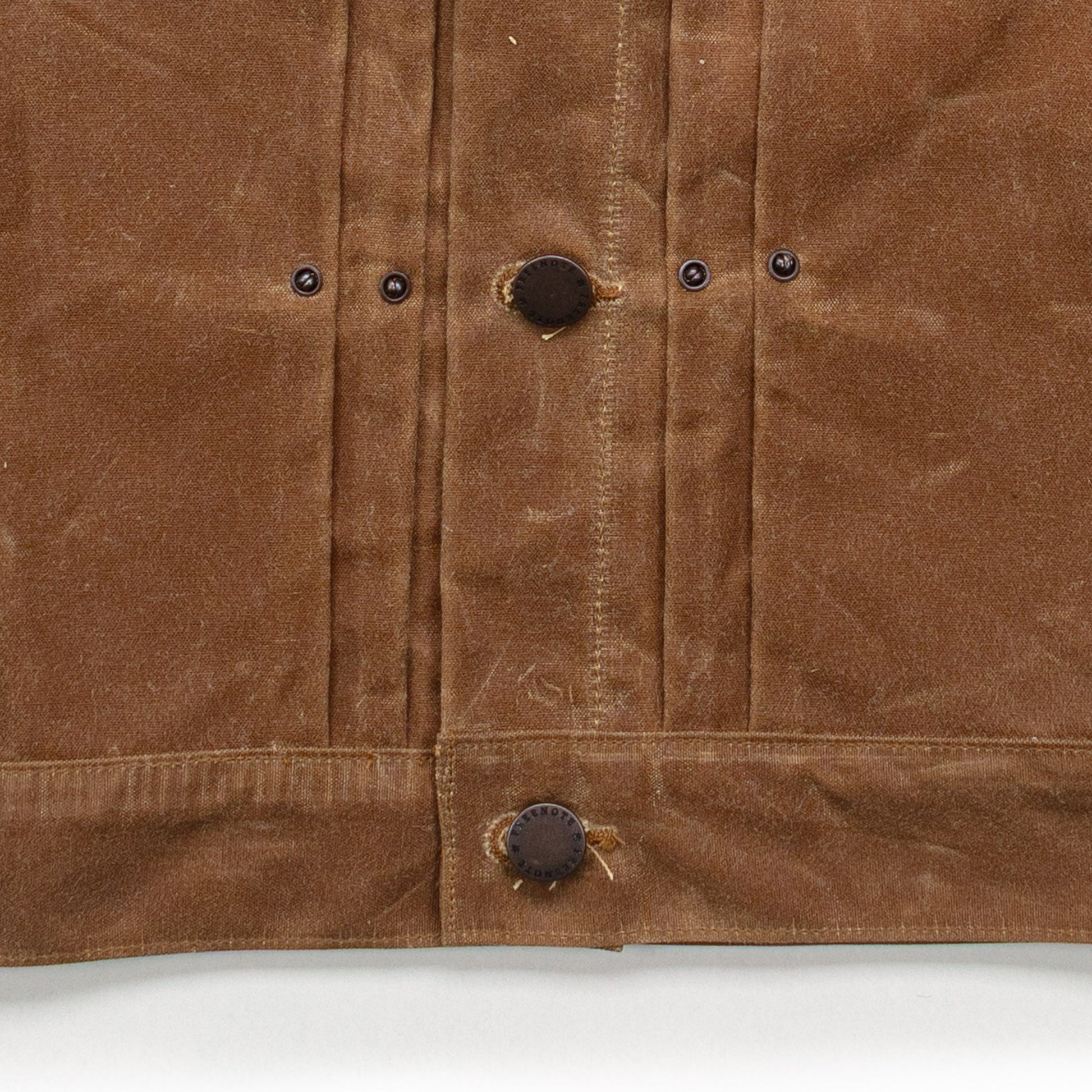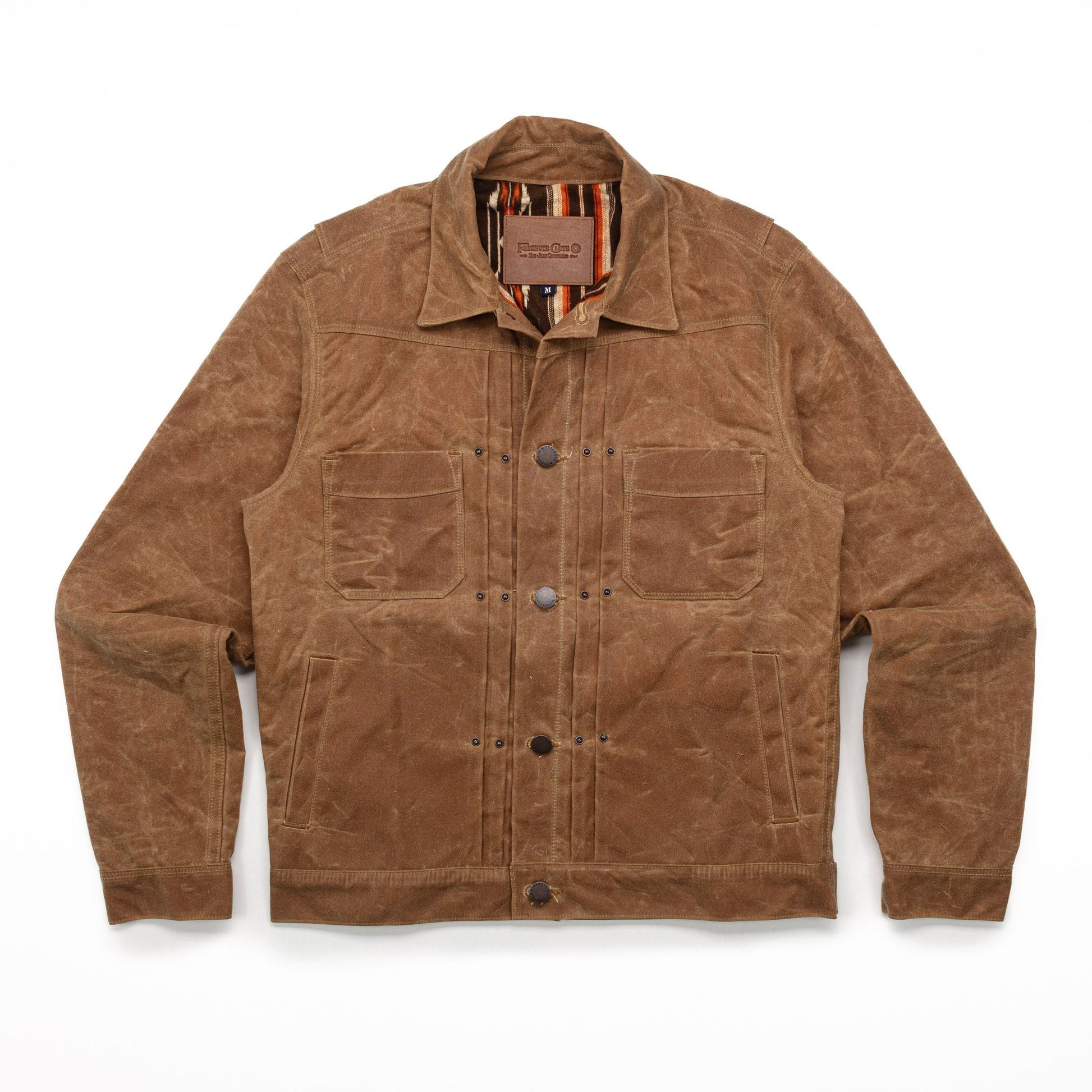 The Riders Jacket, or RJ-1 for short, was one of the first jackets we ever designed. It is a unique mix of a classic ranch jacket combined with a riding jacket. The front pleats expand with movement along with the shoulder gussets in the back. Construction highlights include 1/8” stitch details and custom metal hardware made exclusively for Freenote Cloth. The RJ-1 is equipped with our signature action back for added mobility. Hidden elastic bands in the interior of the jacket help keep the shoulder gussets in place and allow for ease of movement in this heavy piece. In addition, the sleeves are lined with a cotton/rayon blend to make the jacket easier to put on and take off.