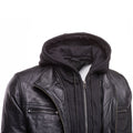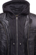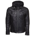 Wilder Black Leather Jacket With Removable Hoodie